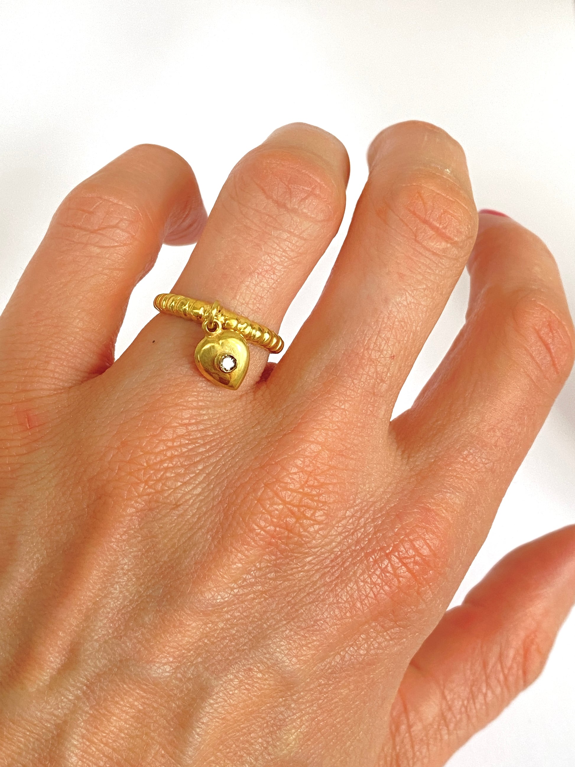 Vintage, 18ct Gold, Hanging Heart Ring with Diamond