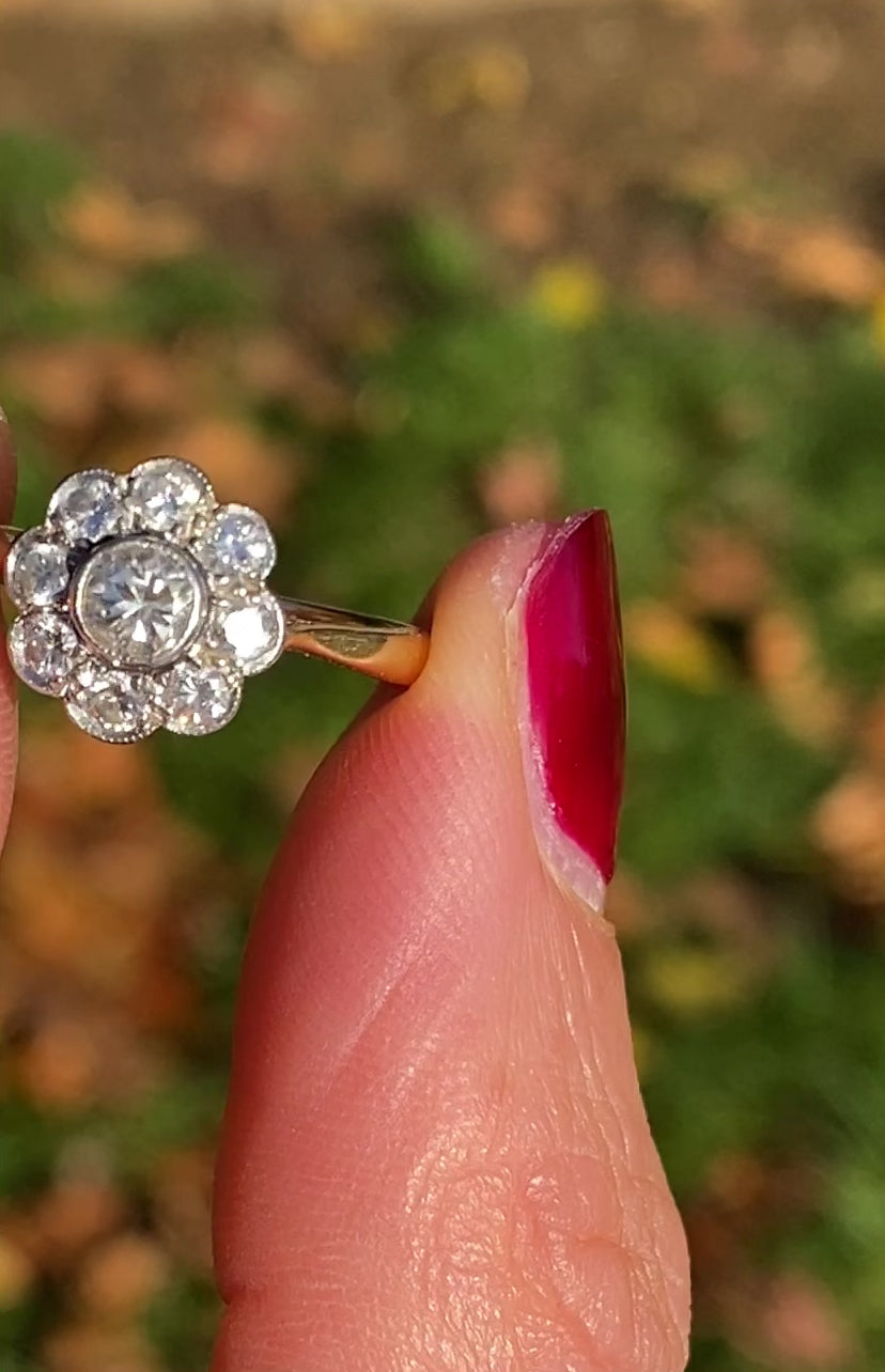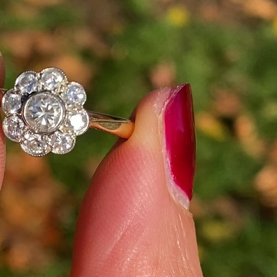 Art Deco, 18ct Gold Diamond Cluster / Daisy Ring