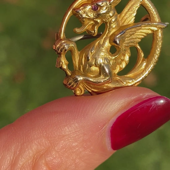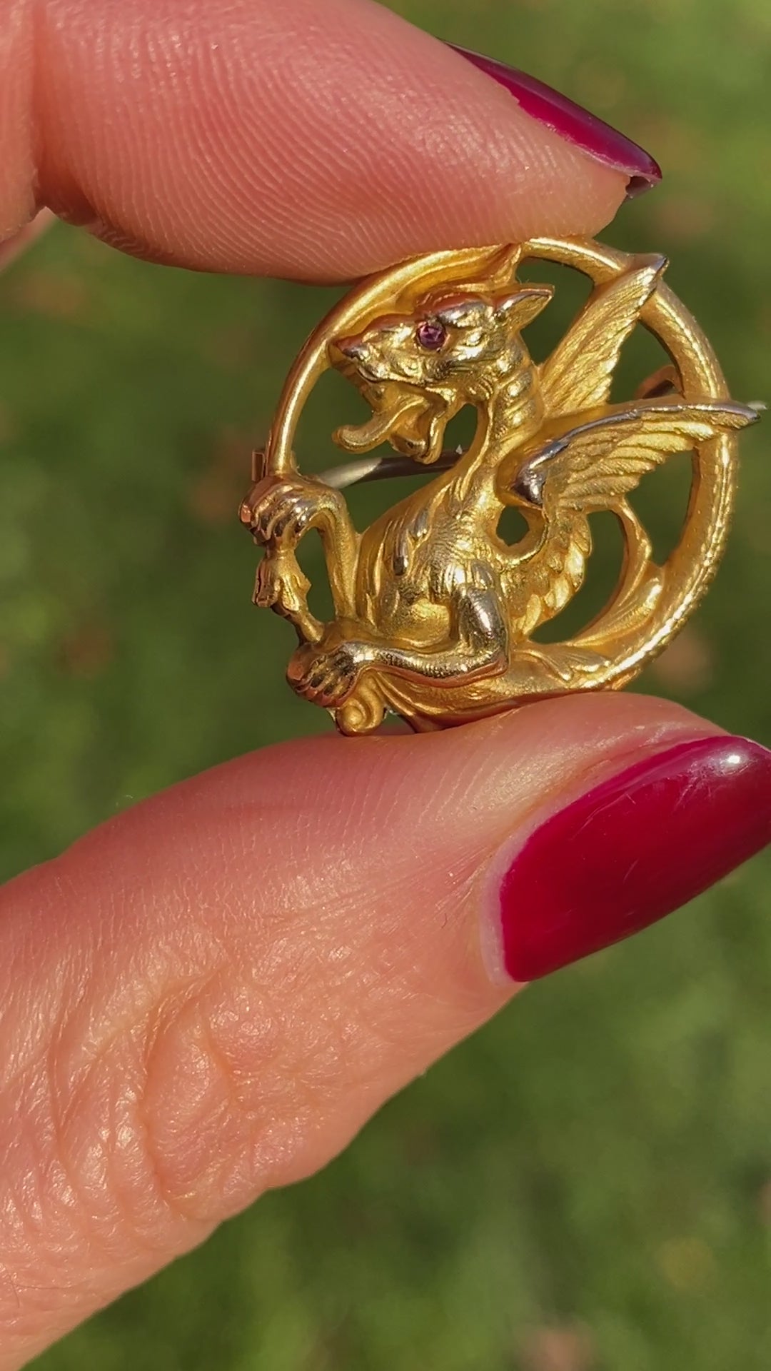 This wonderful antique (Art Nouveau) french brooch depicts a dragon, which represents power and protection