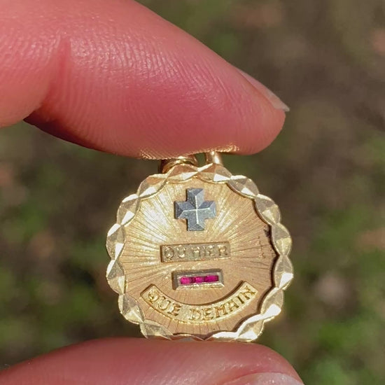 Vintage, 18ct Gold, Ruby French Augis Love Pendant, 'Qu'hier - Que demain'