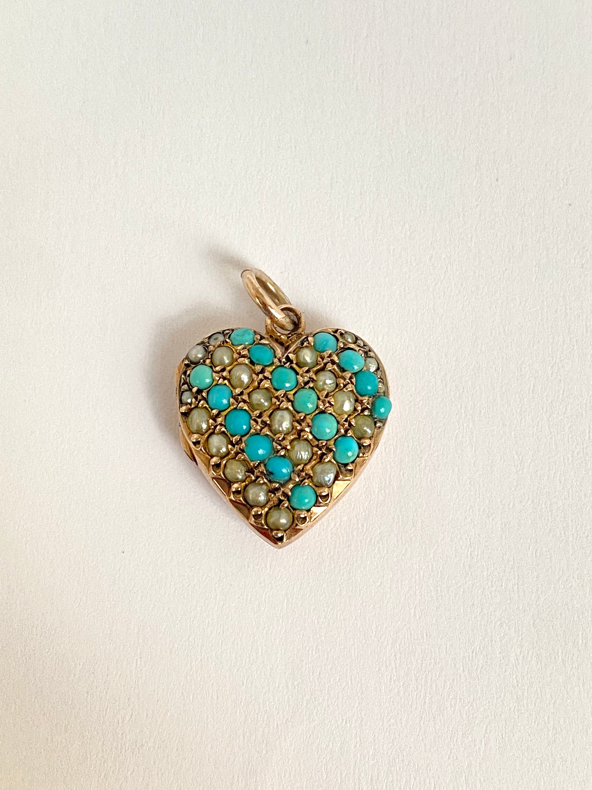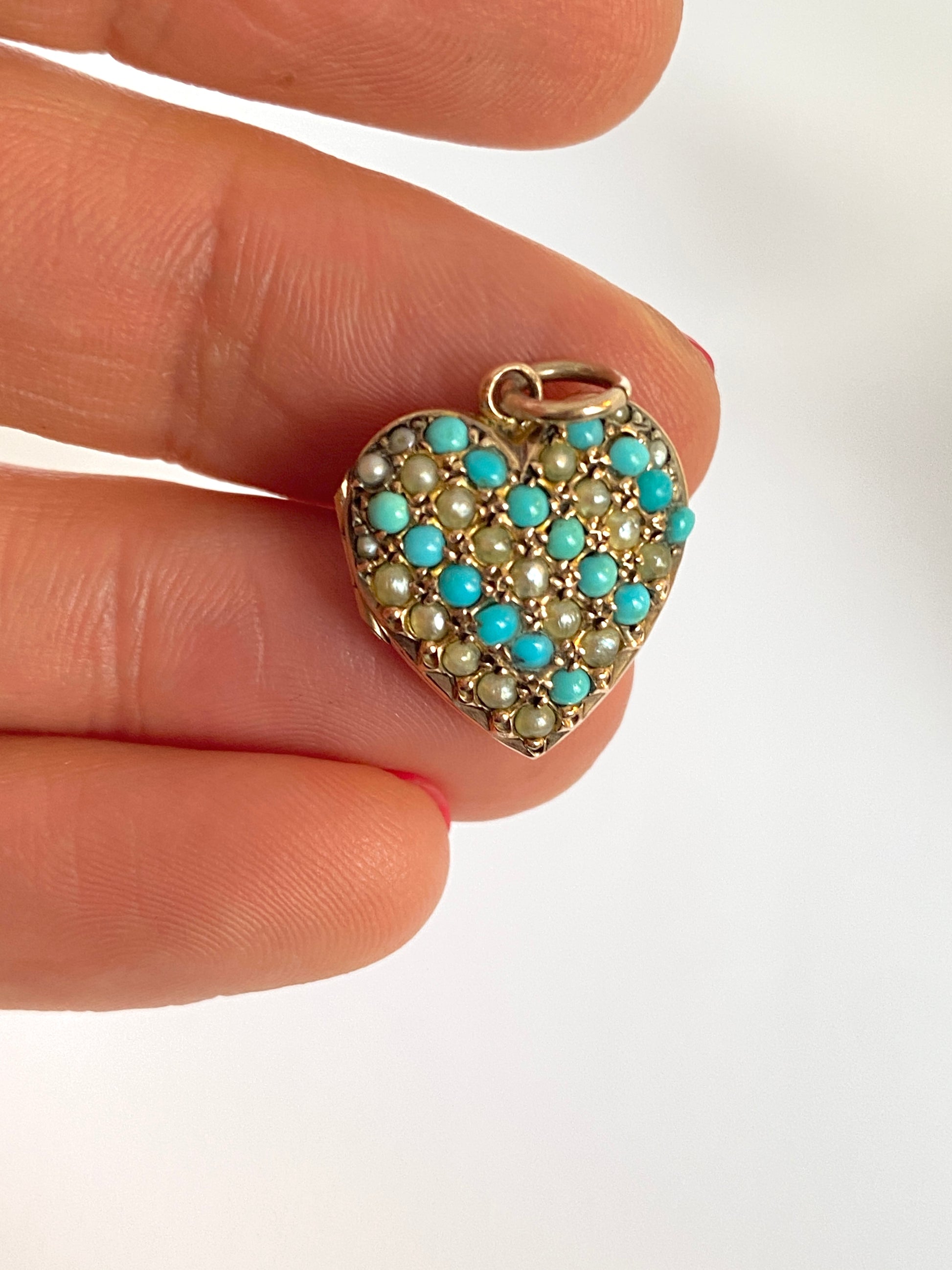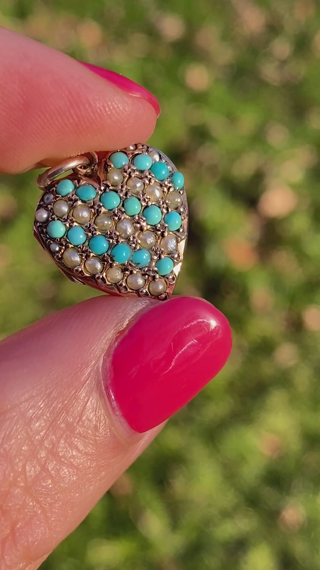 Vintage 9ct Gold Turquoise & Seed Pearl Heart Locket/Pendant
