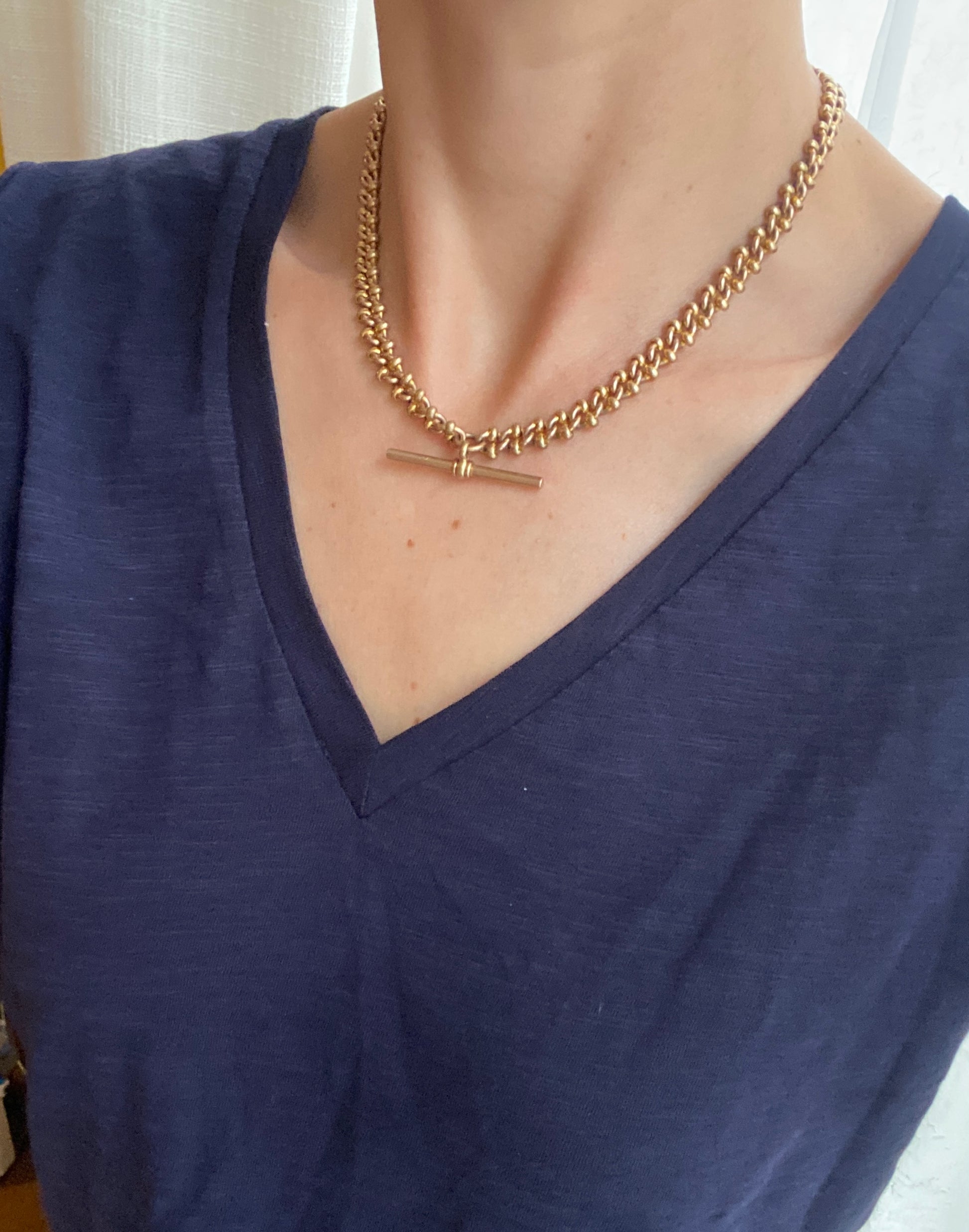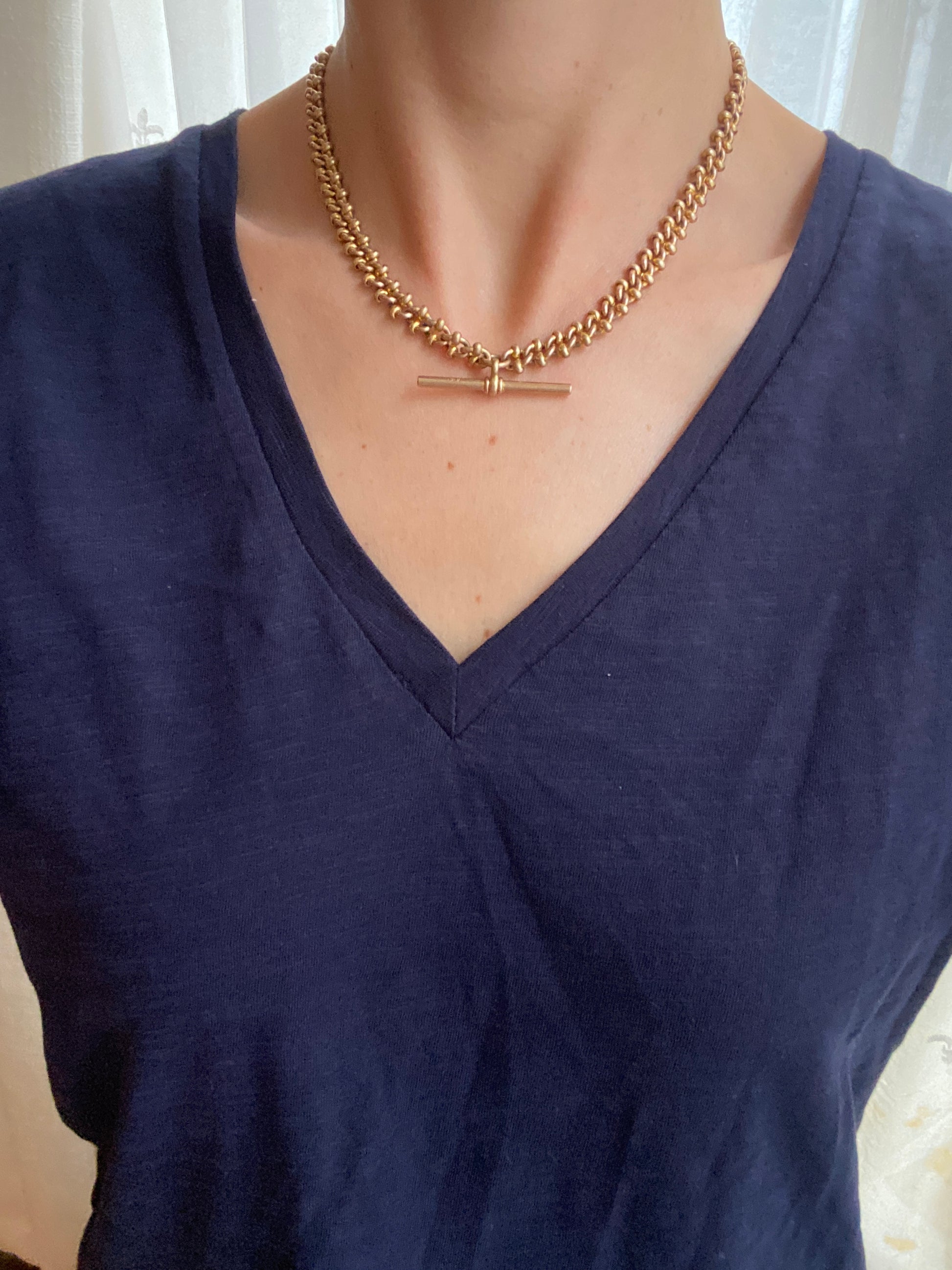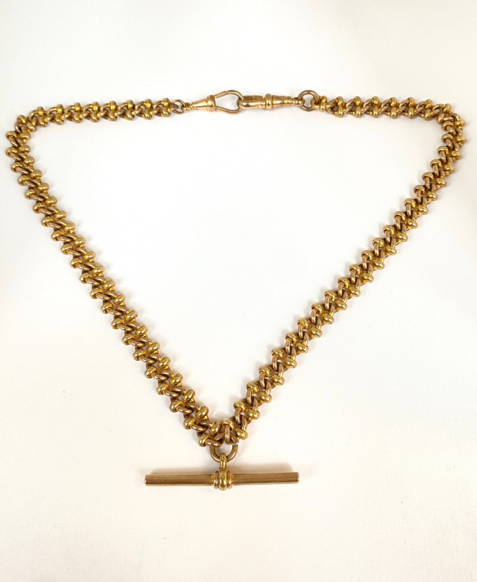 This chain is mid-victorian and does show some signs of wear in the form of tarnishing on some of the links and T bar, but given the chain's age, and the fact it is not gold, I would say its in remarkable condition!