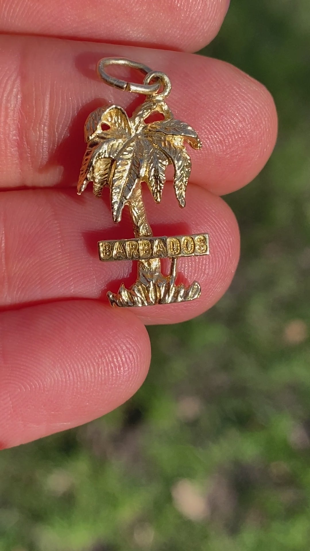 With a sign saying 'Barbados' on its trunk the palm tree is a great size at 2.2cm x 1.1cm. Stunning details are engraved over the entirety of the tree, on both sides and from the top of the leaves right down to the grass at the base of the charm.