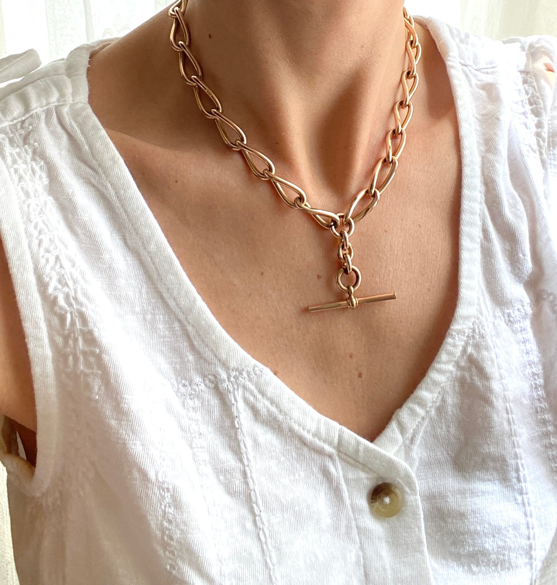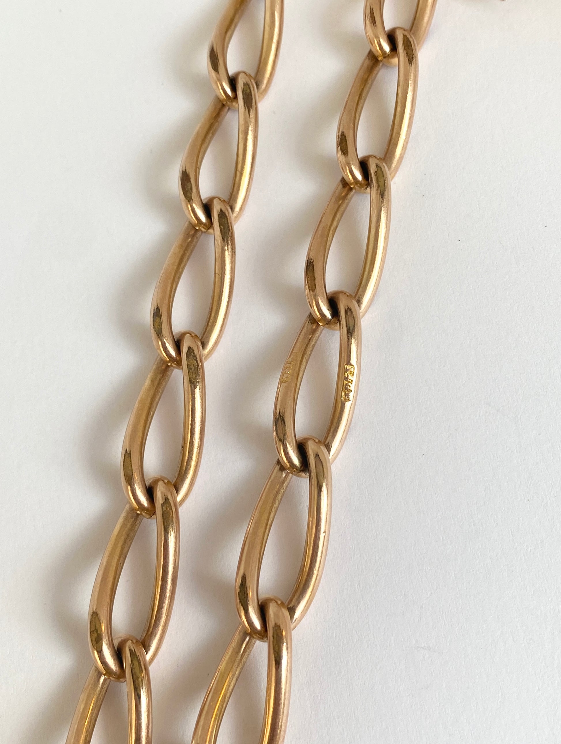 What makes this chain really incredible is that it has all its original features. It is hallmarked for its makers mark (T. H) and 14ct Gold Fill on both its dog clips, its T-bar and its links. So you know all the bits belong together!
