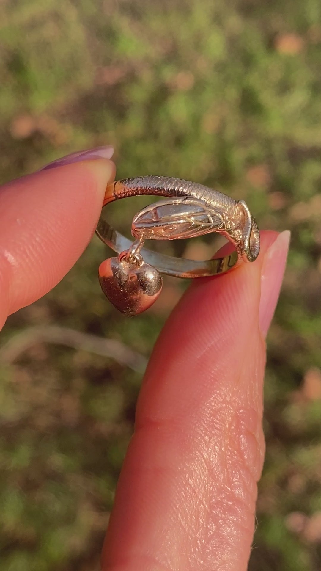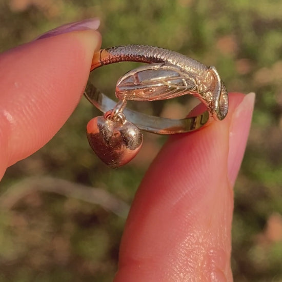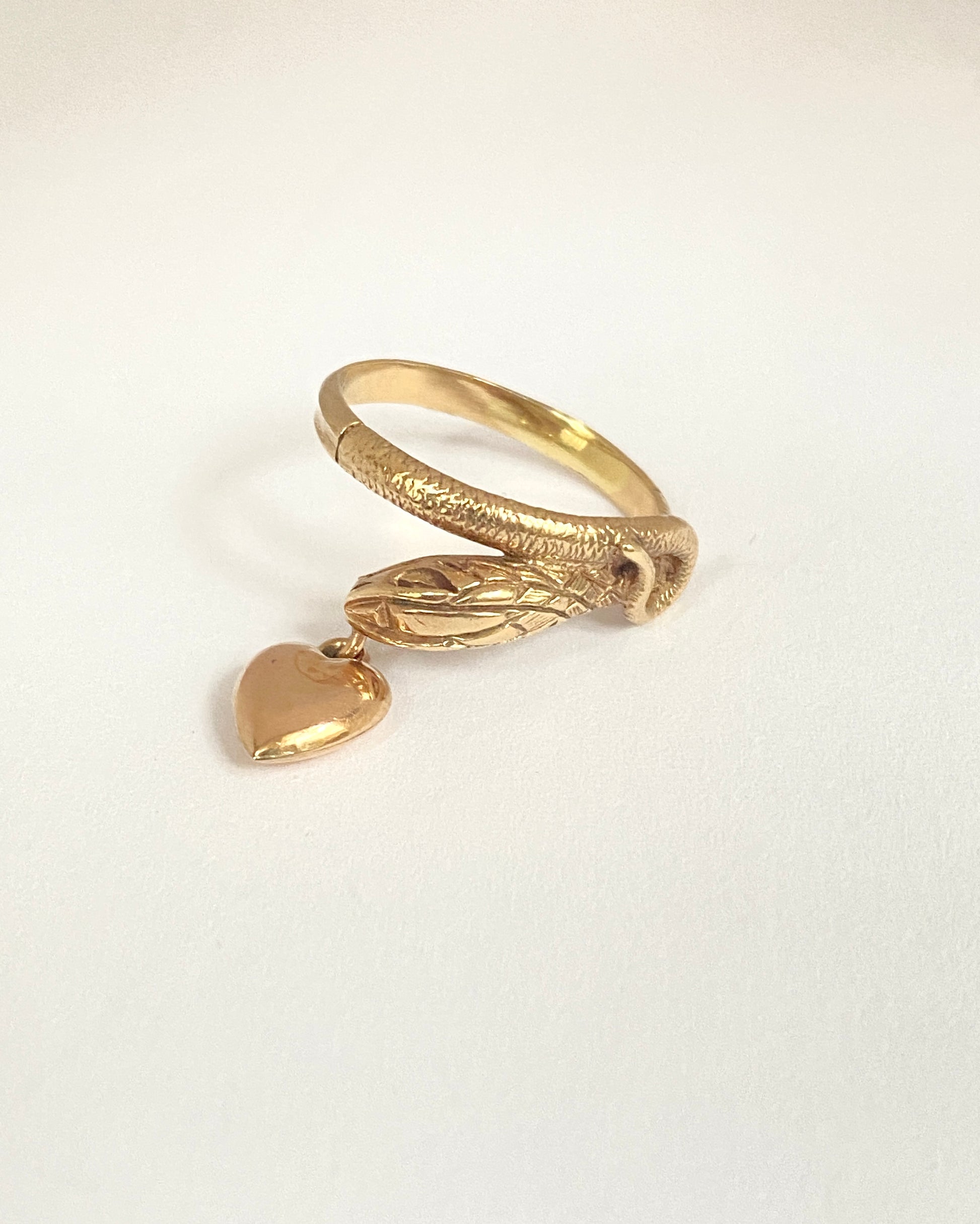 9ct Gold Vintage Snake Ring with Hanging Heart