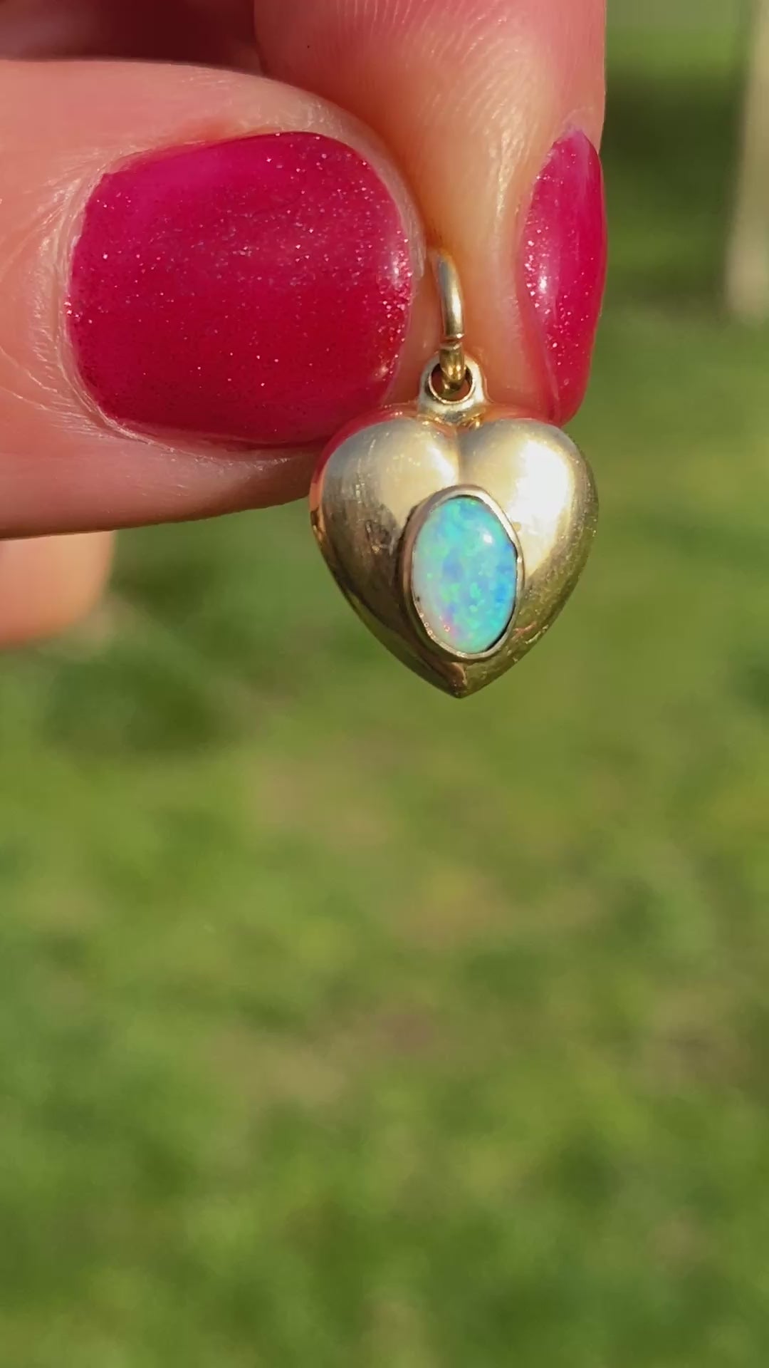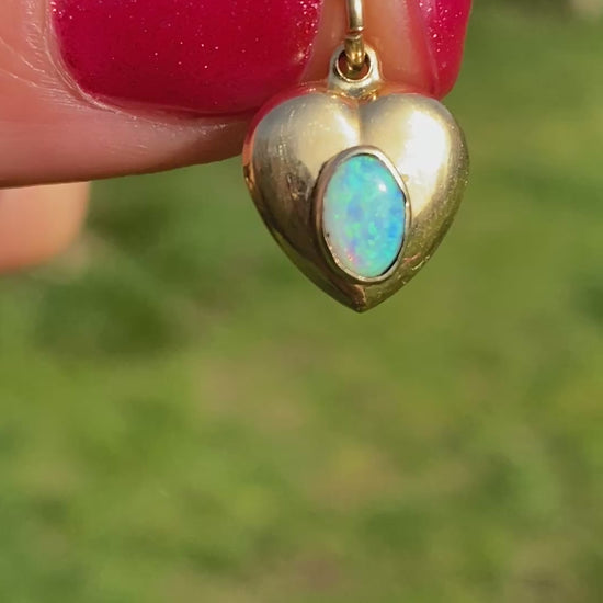 Vintage 18ct Gold Opal Puffy Heart Pendant