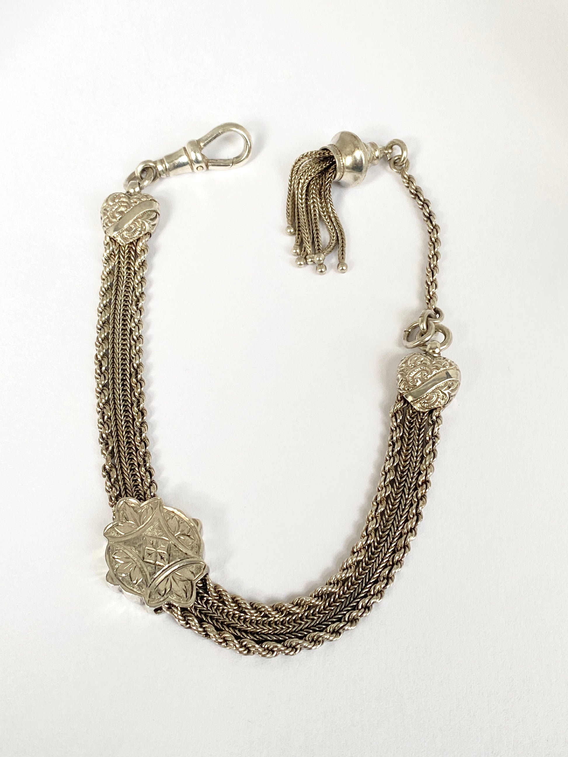 Antique, Silver and Enamel Fancy Link Albertina Bracelet with Dog Clip and Tassel