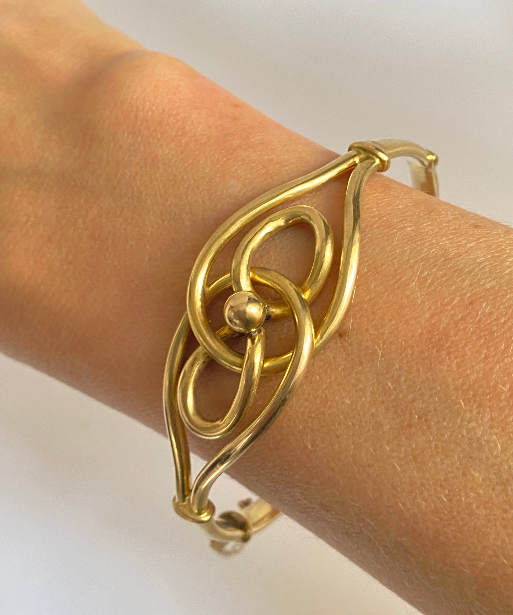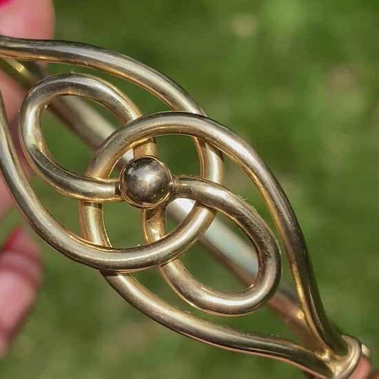 Antique, 9ct Gold Lovers Knot Bangle, 7.89g