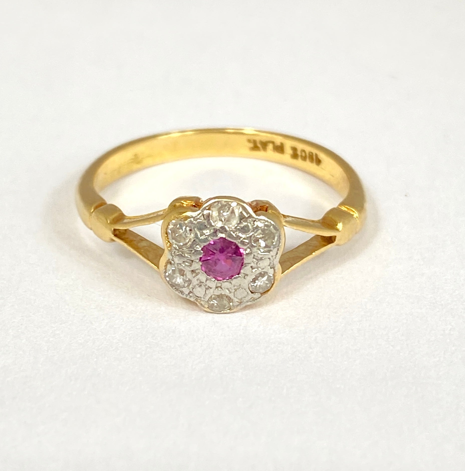 Vintage, 18ct Gold Ruby and Diamond Flower Ring