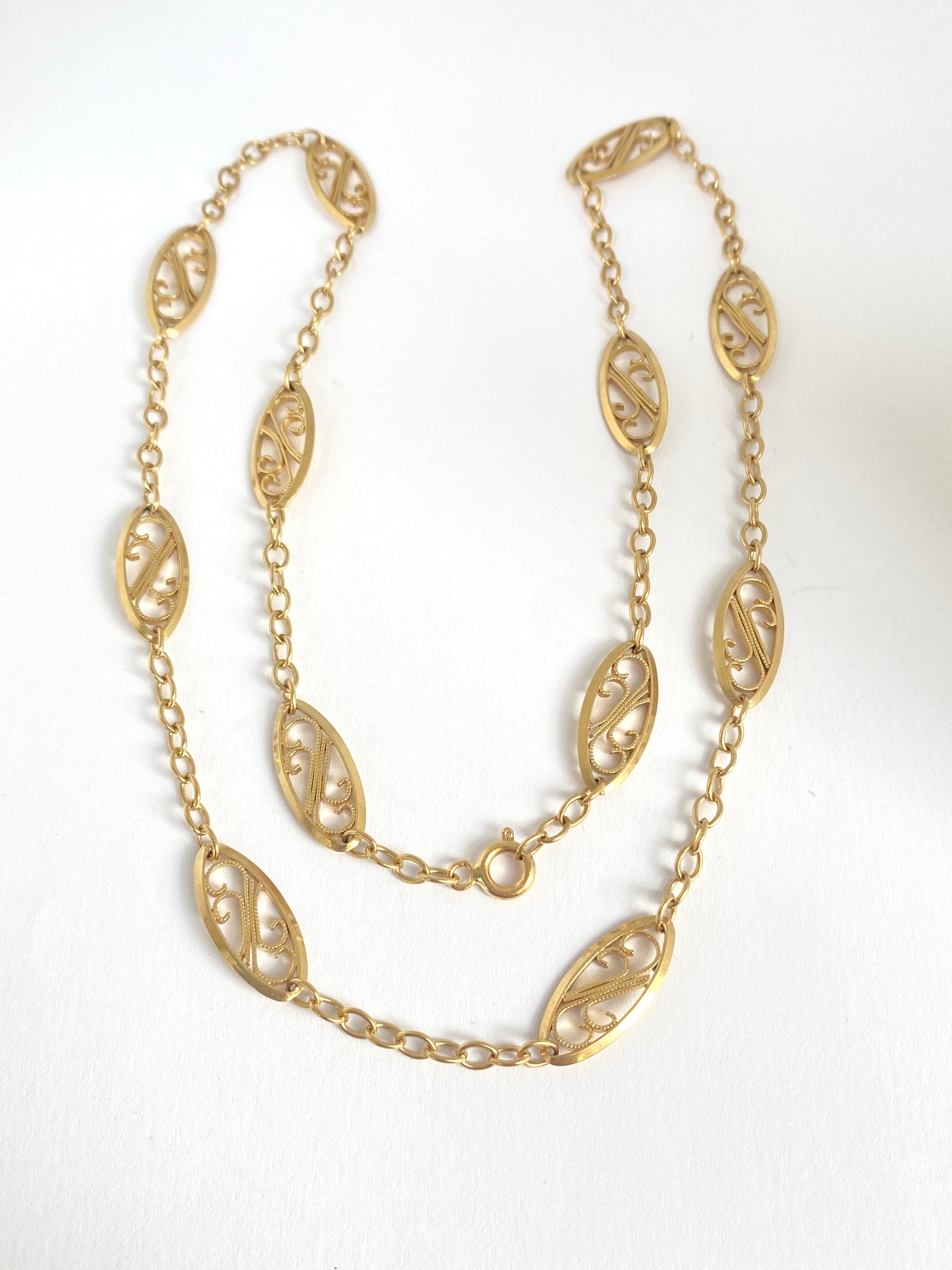 Stunning, 18ct Gold, 19.5 inch Antique French Filigree Link Chain ( 14.20g)