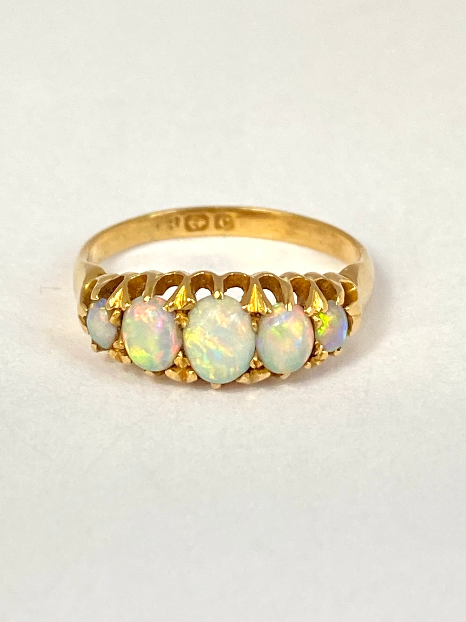 Edwardian, 18ct Gold, Five Stone Opal Ring, Hallmarked 18ct Gold, Birmingham, 1902