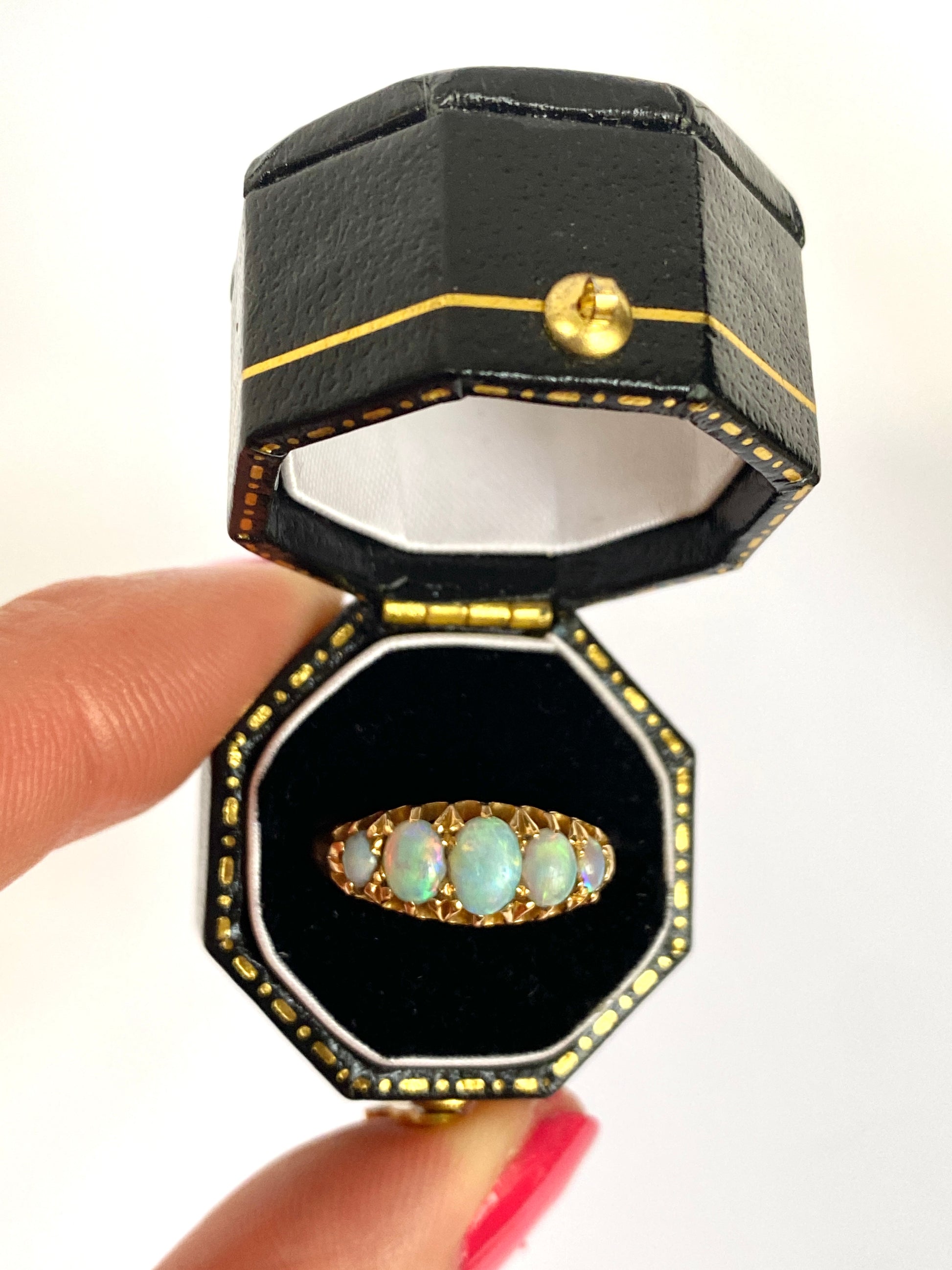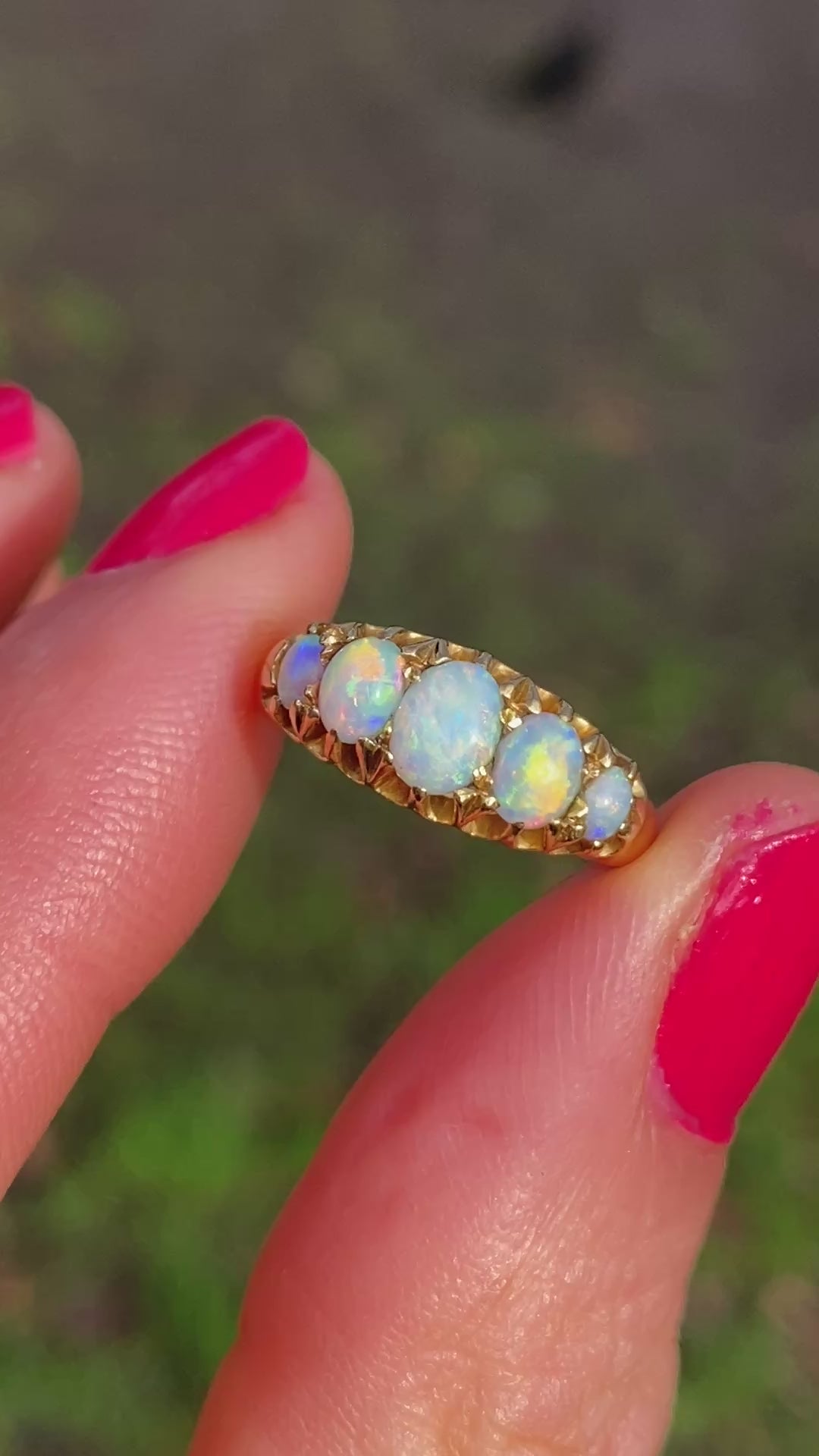 This is a timeless, 5 stone opal ring, a design which is still as impressive and classic today as it has even been.