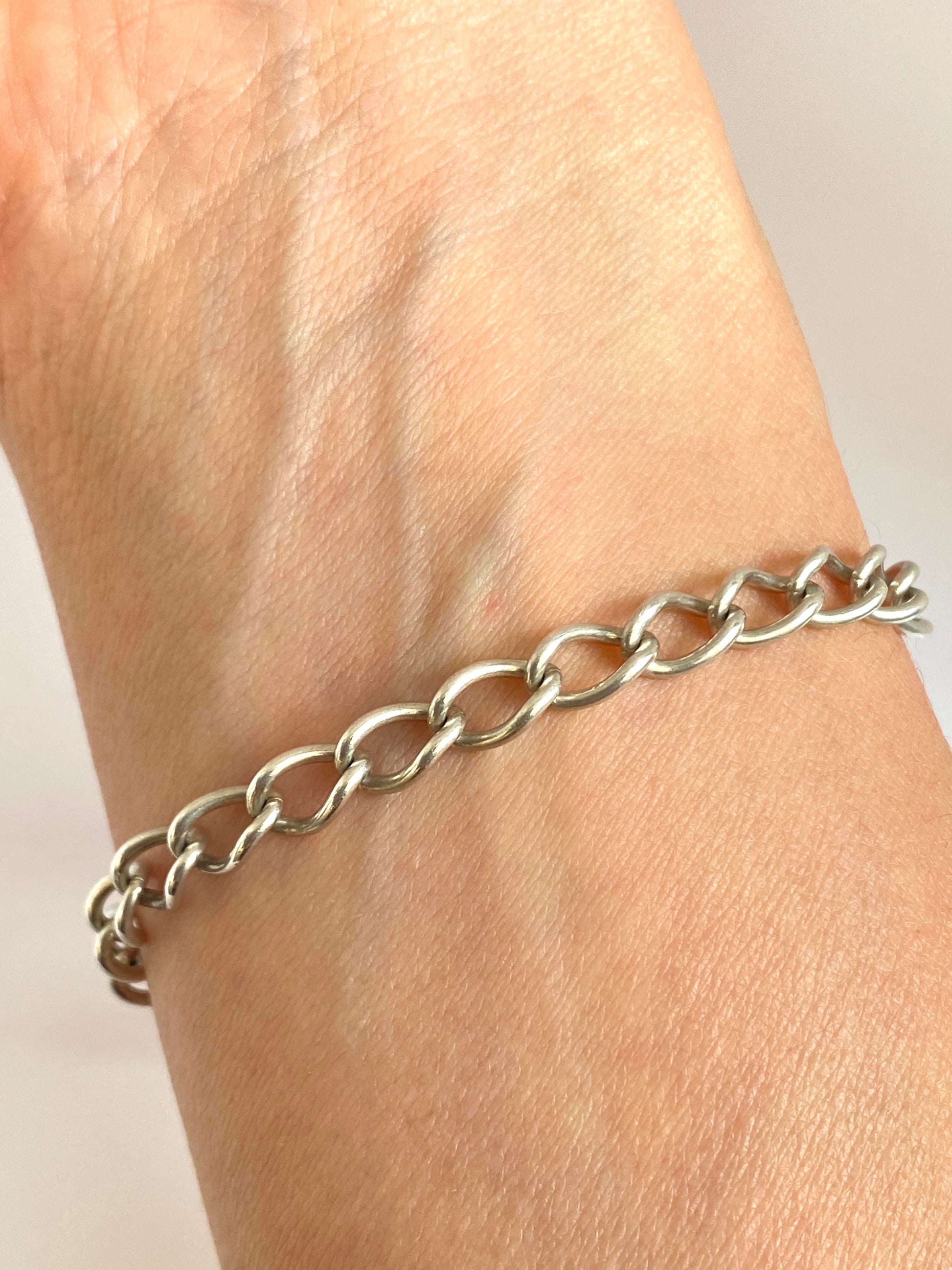 The bracelet measures 7 inches and weighs 9.85g. Its padlock is marked for osterling silver, London and the year 1975. It also bears its makers mark; L.C