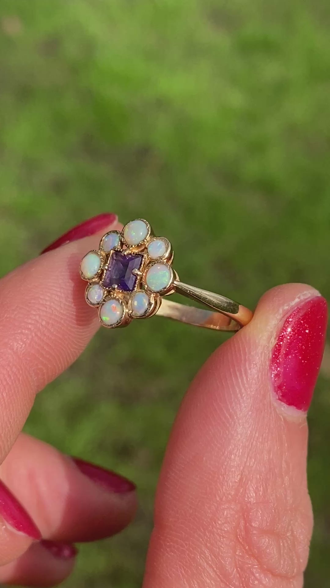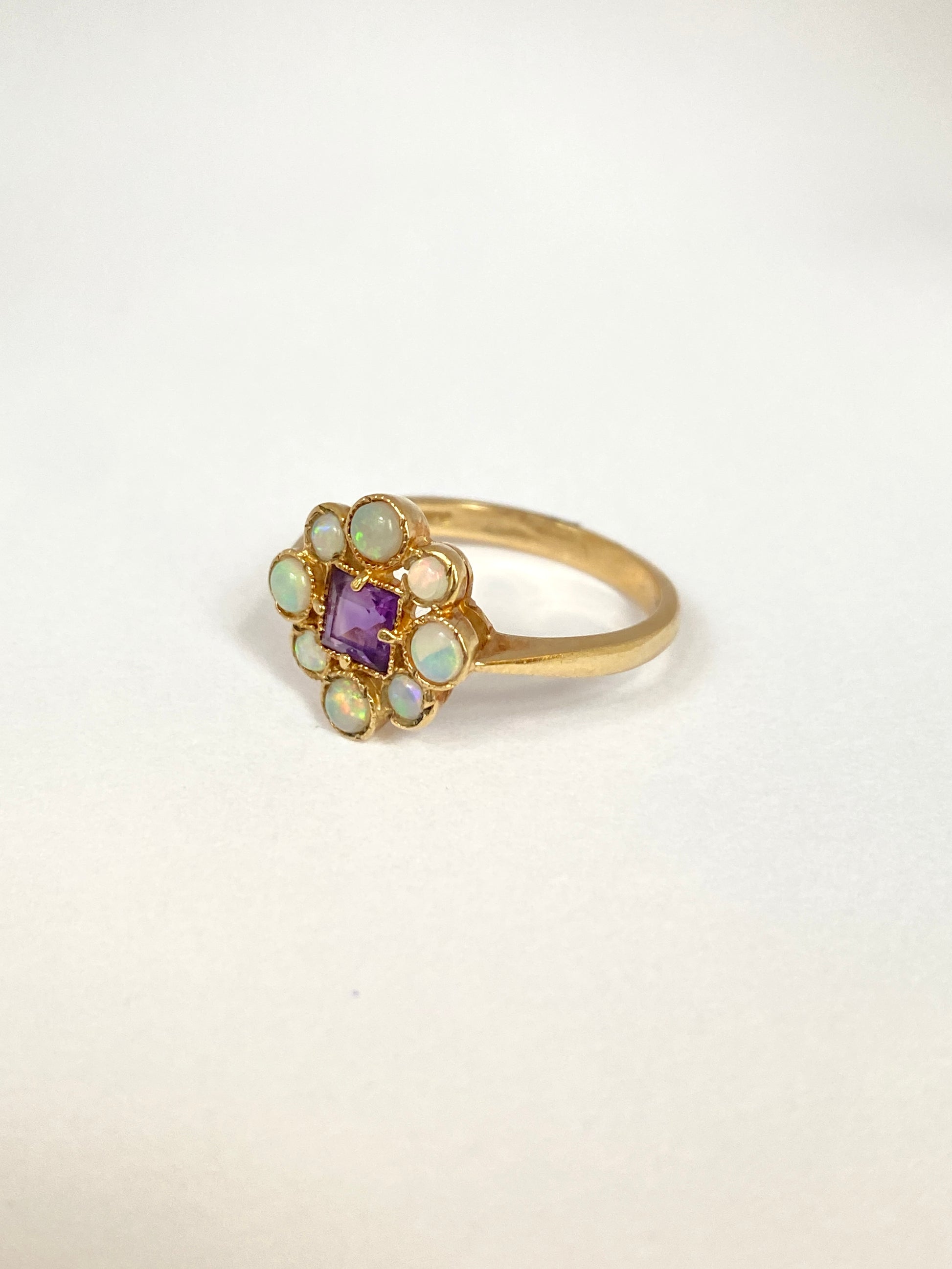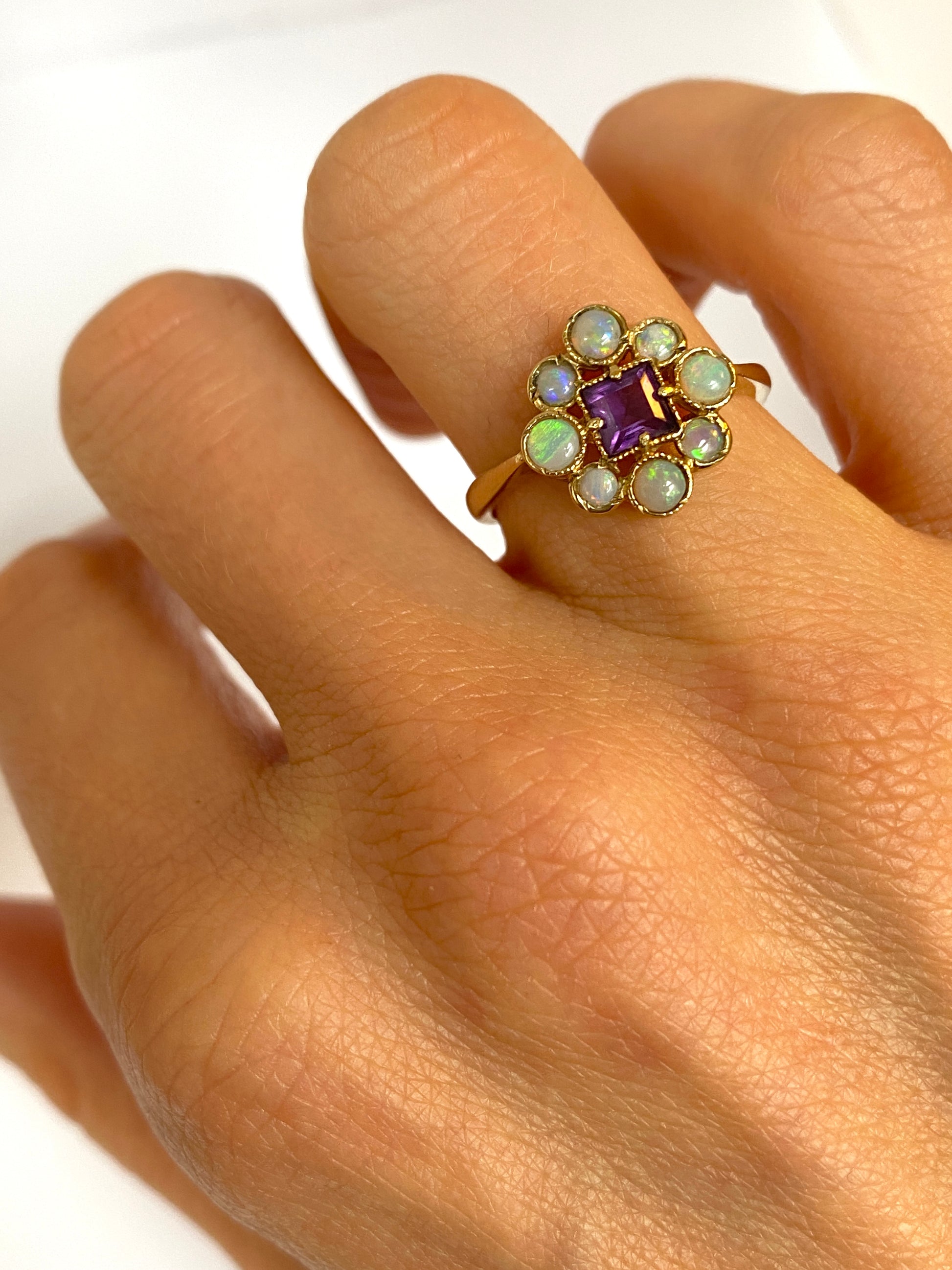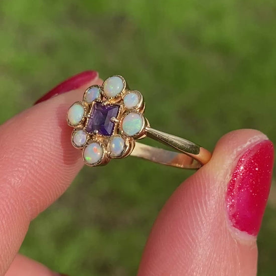 Sweet, Vintage, 9ct Gold, Opal and Amethyst Cluster Ring