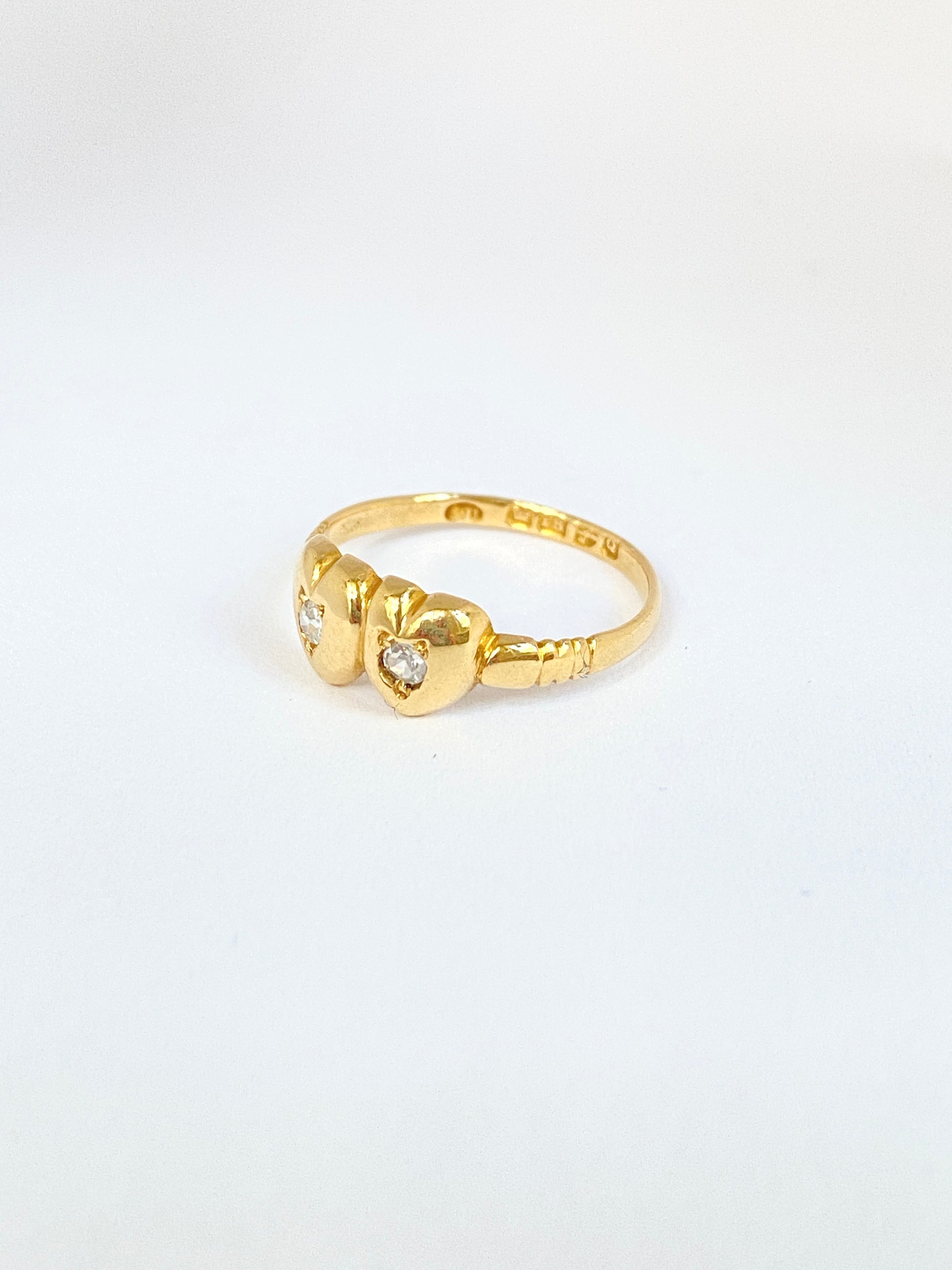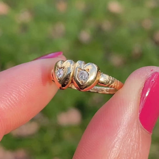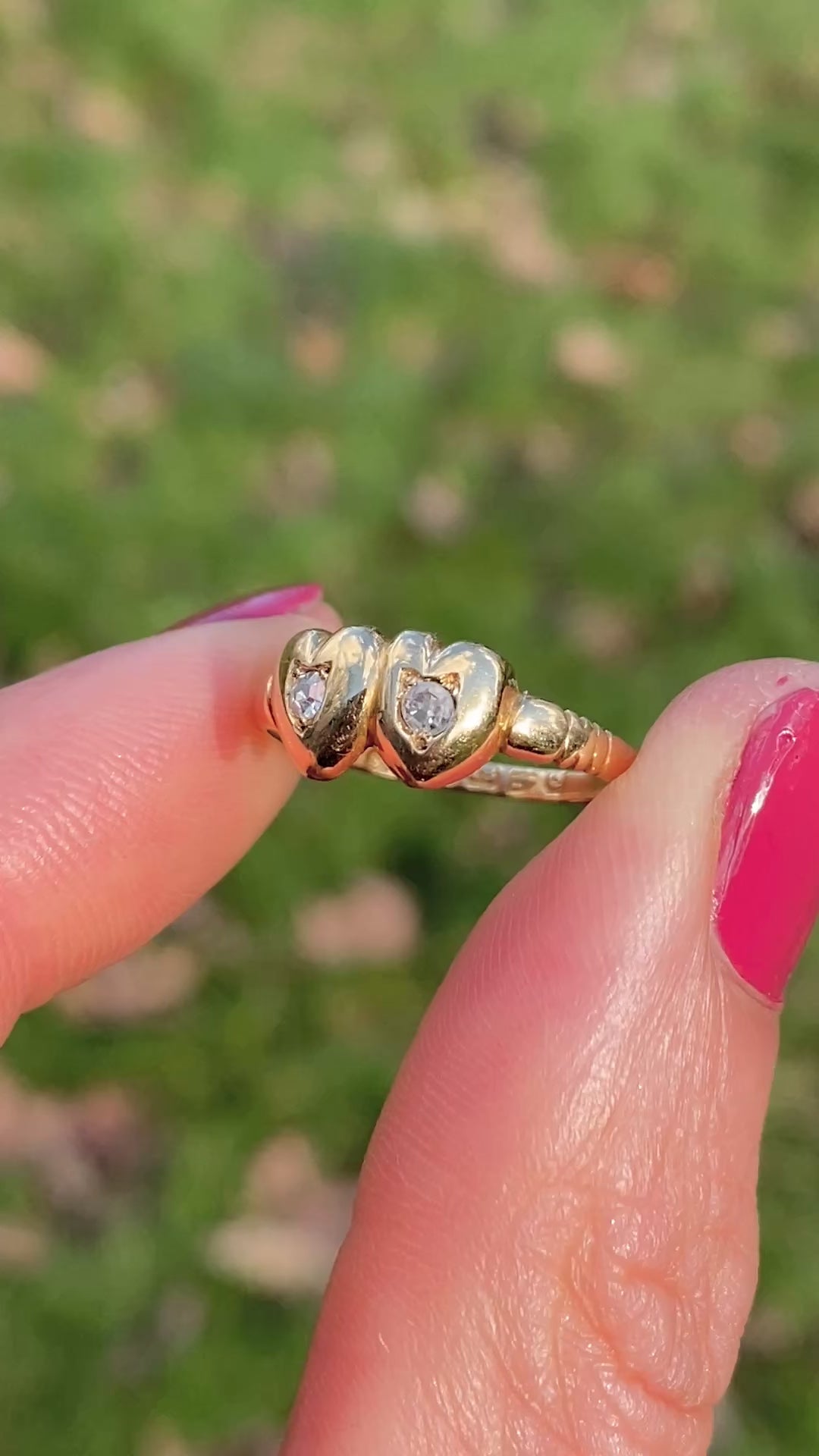 Victorian Double Heart Diamond ring, Hallmarked, 18ct Gold, Chester, 1895