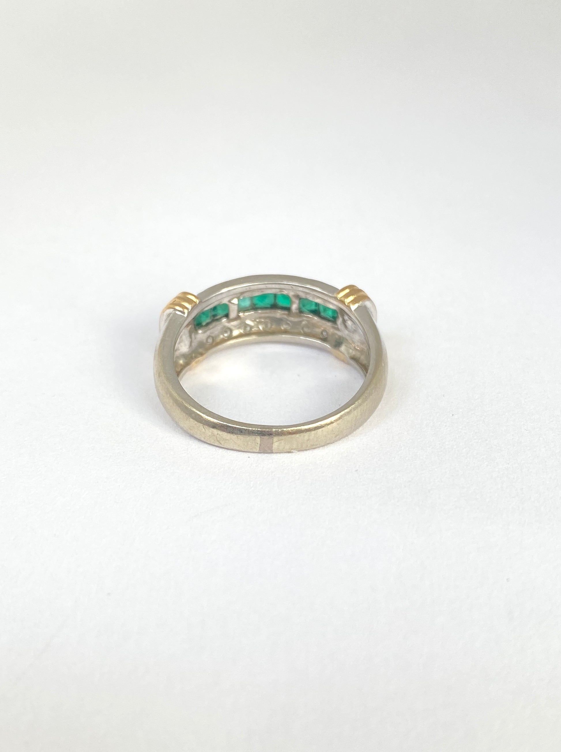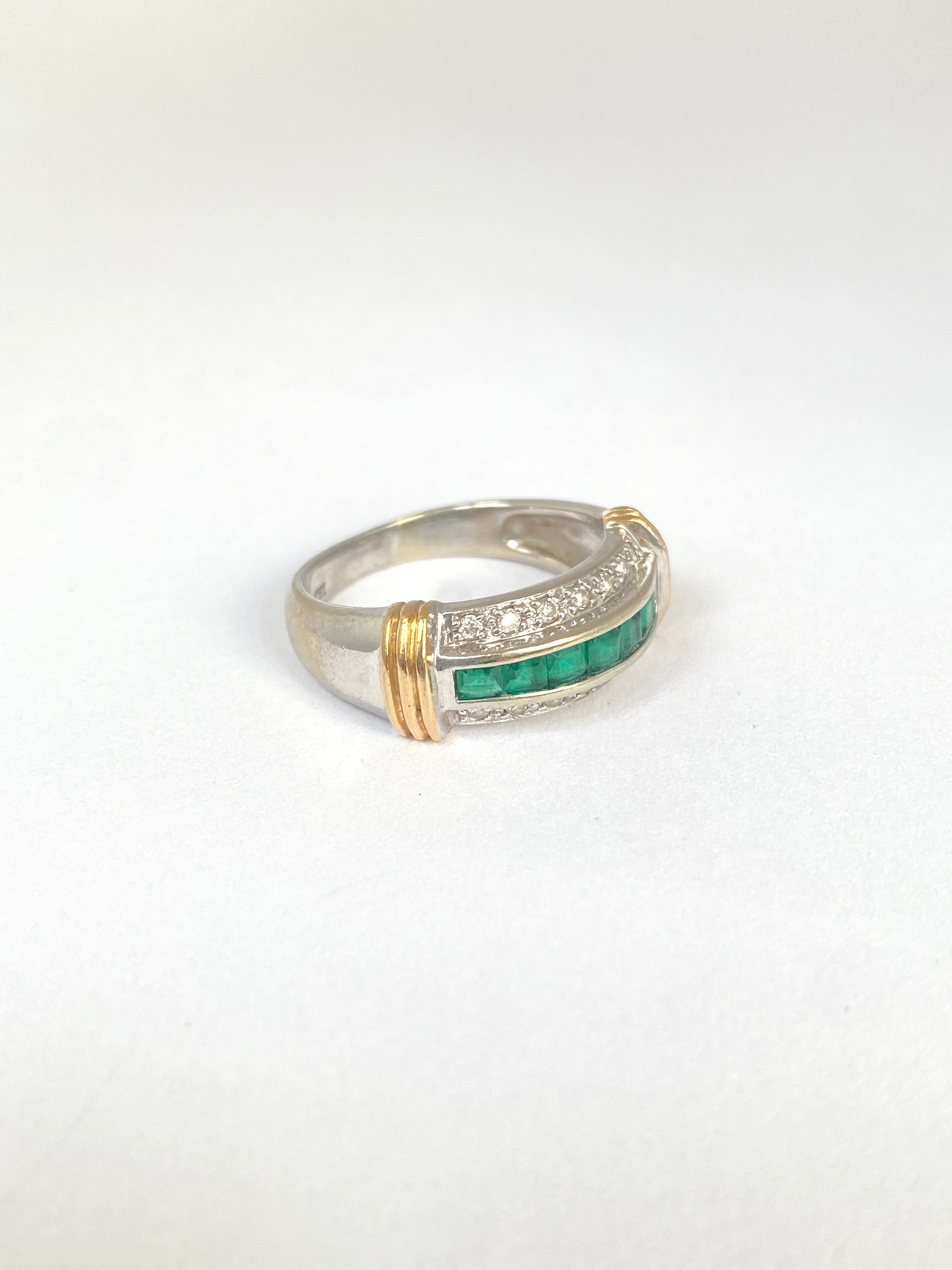 Vintage, 14ct Gold Diamond and Emerald Ring (1980s) 5.26g