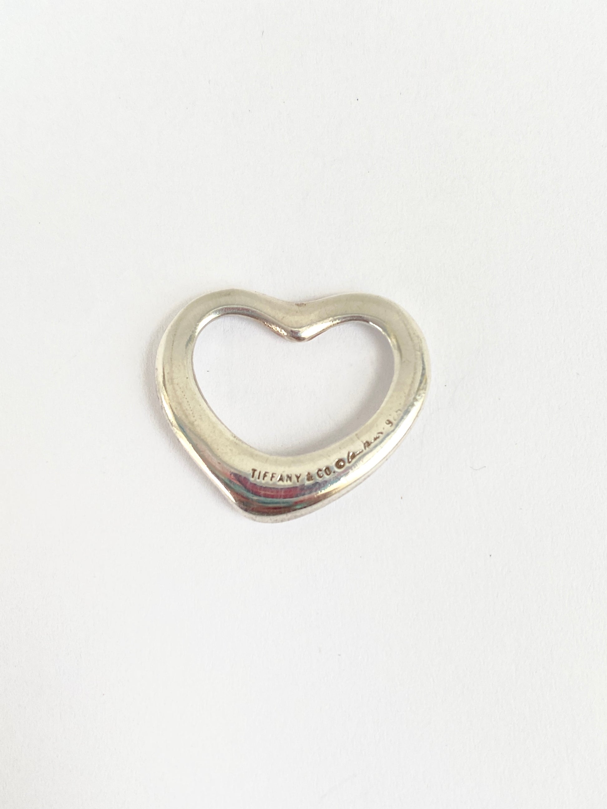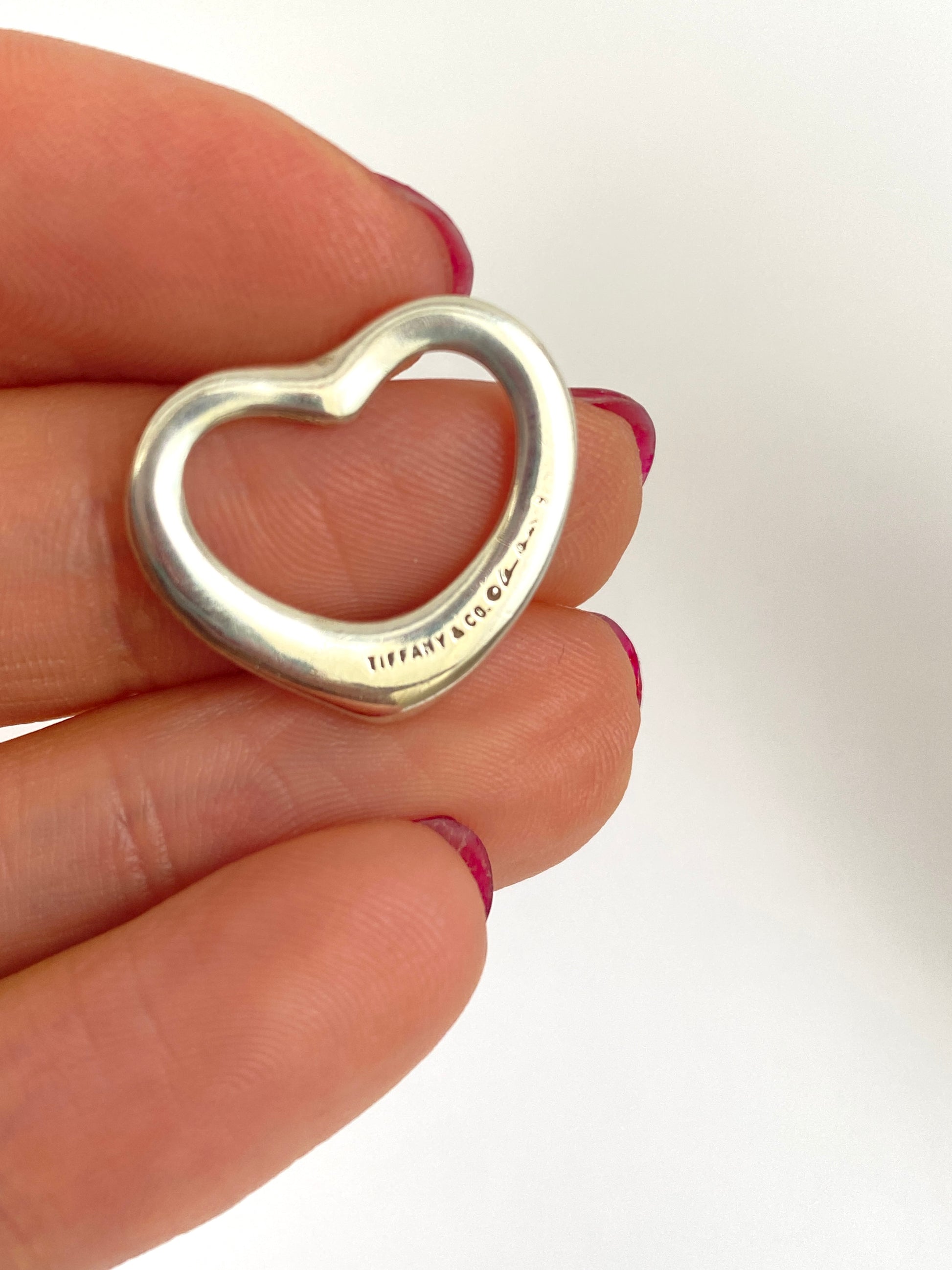 This vintage Tiffany open heart necklace was designed by Elsa Peretti in the 1970s and was made in the spirit of Love and is one of her most iconic pieces. The necklace and pendant are crafted from Sterling Sillver and the heart measures 21mm wide, and the chain, 16 inches.