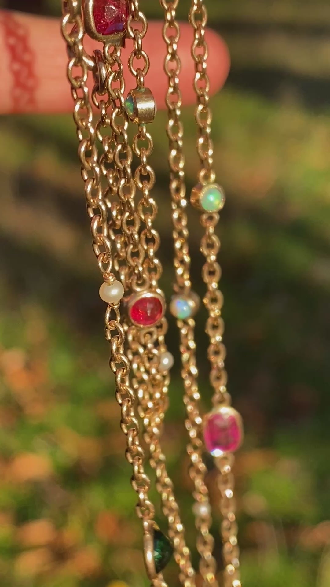 Vintage, 32 inch, 9ct Gold, MUlti Gem Chain, 8.55g