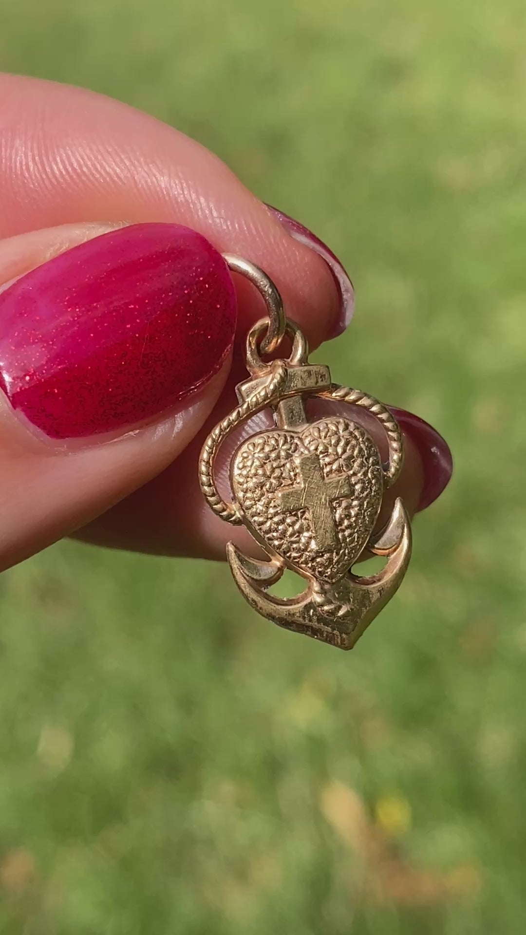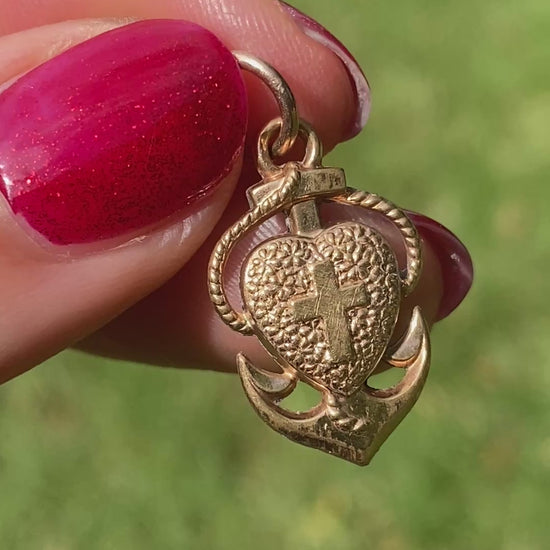 This is such a pretty antique charm, steeped in symbolism. Featuring a cross (the symbol of Christianity), an anchor (the symbol of hope) and a heart (the symbol of love), this fabulous pendant is traditional and well recognised.