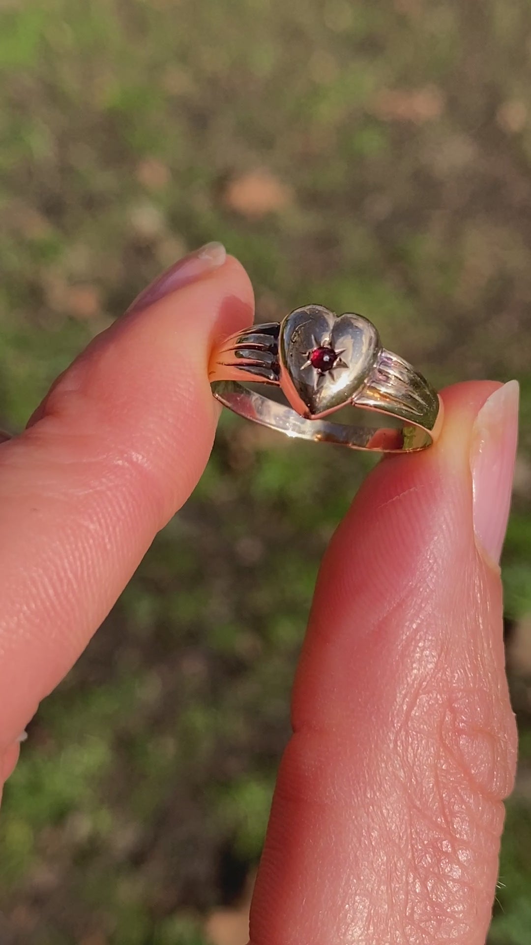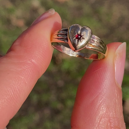 Vintage 9ct Gold, Garnet Heart Ring