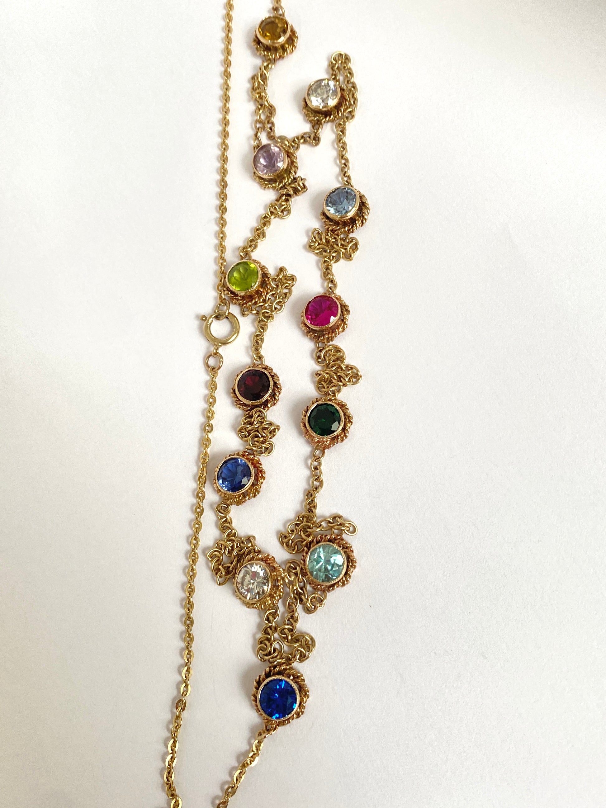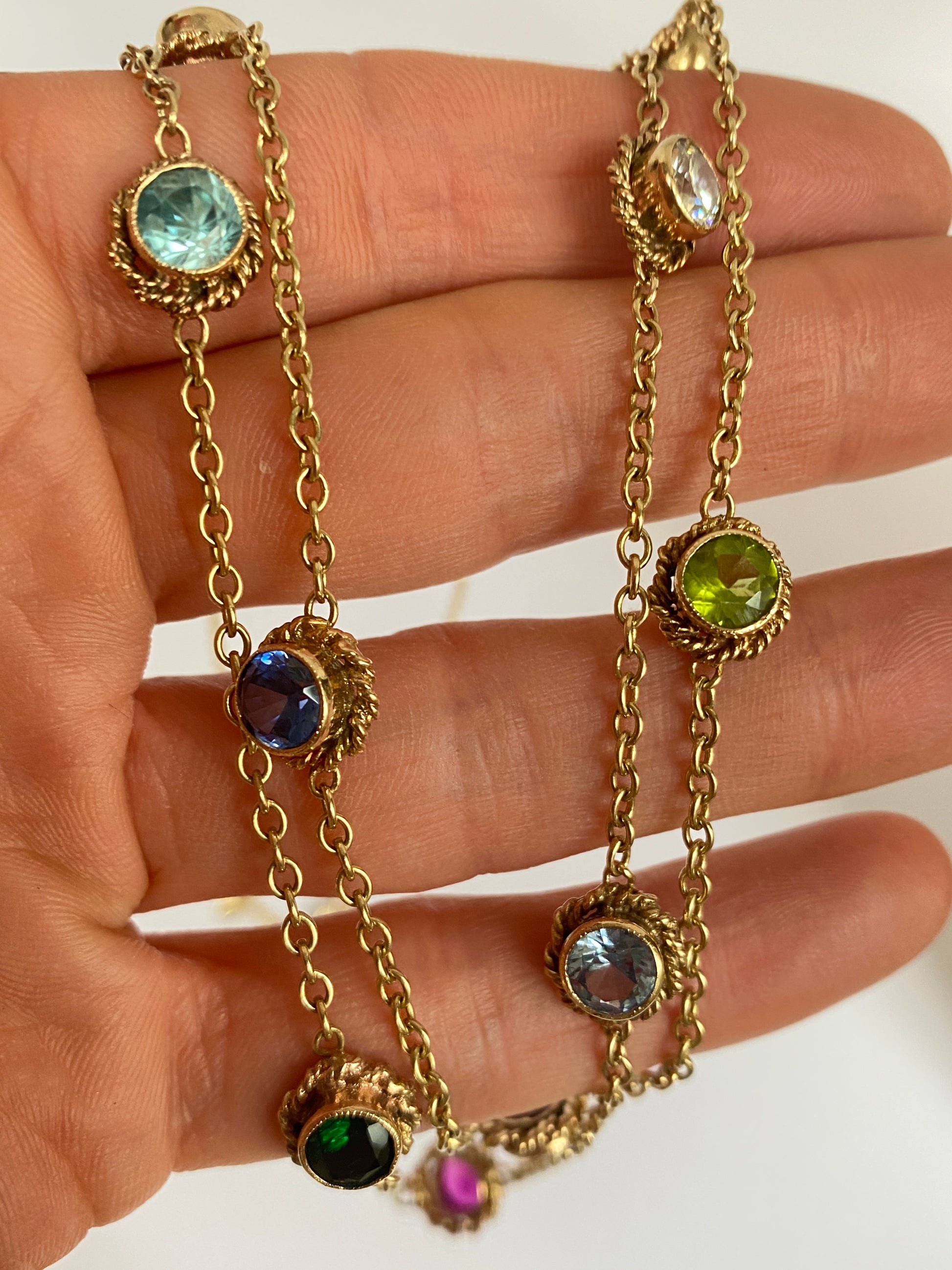 Vintage, 9ct Gold Multi Stone Chain of 21.5 inches and 19.08g