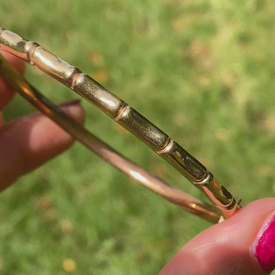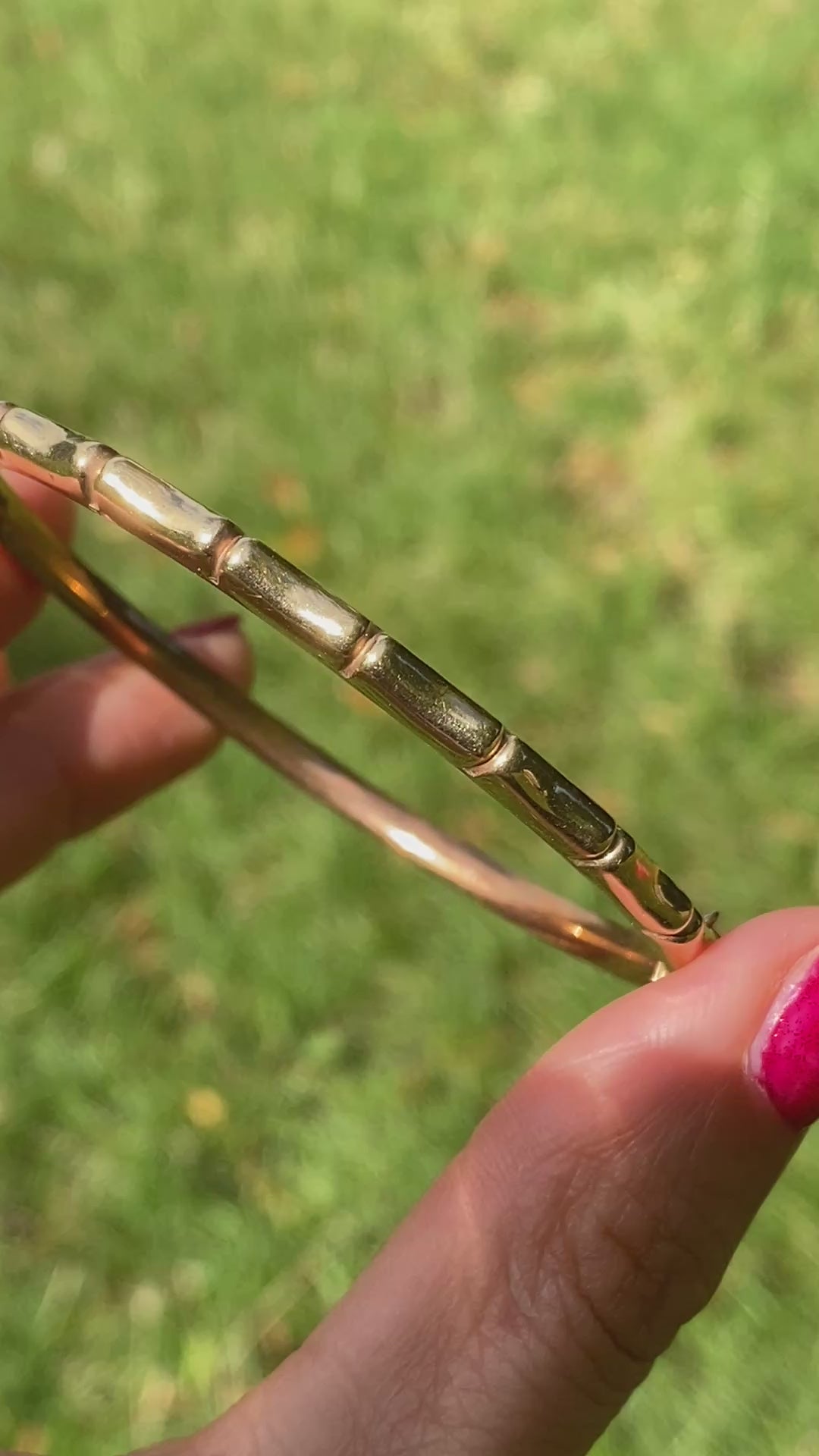 Vintage, 9ct Gold Skinny Bamboo Bangle (7.62g) Hallmarked, 9ct Gold, Birmingham, 1990