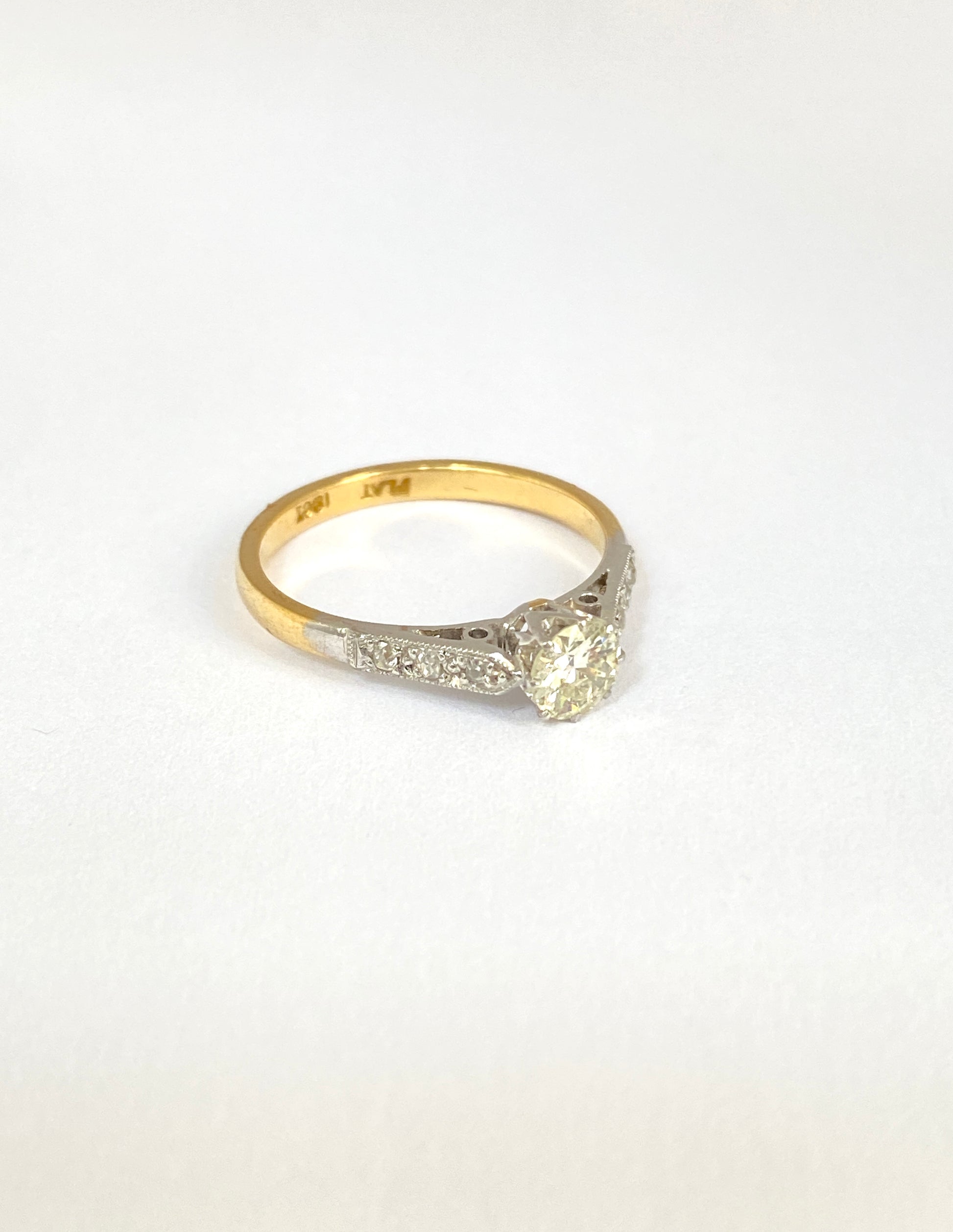 Vintage, Art Deco 18ct Gold and Platinum Diamond Solitaire Engagement Ring, Hallmarked 18ct Gold