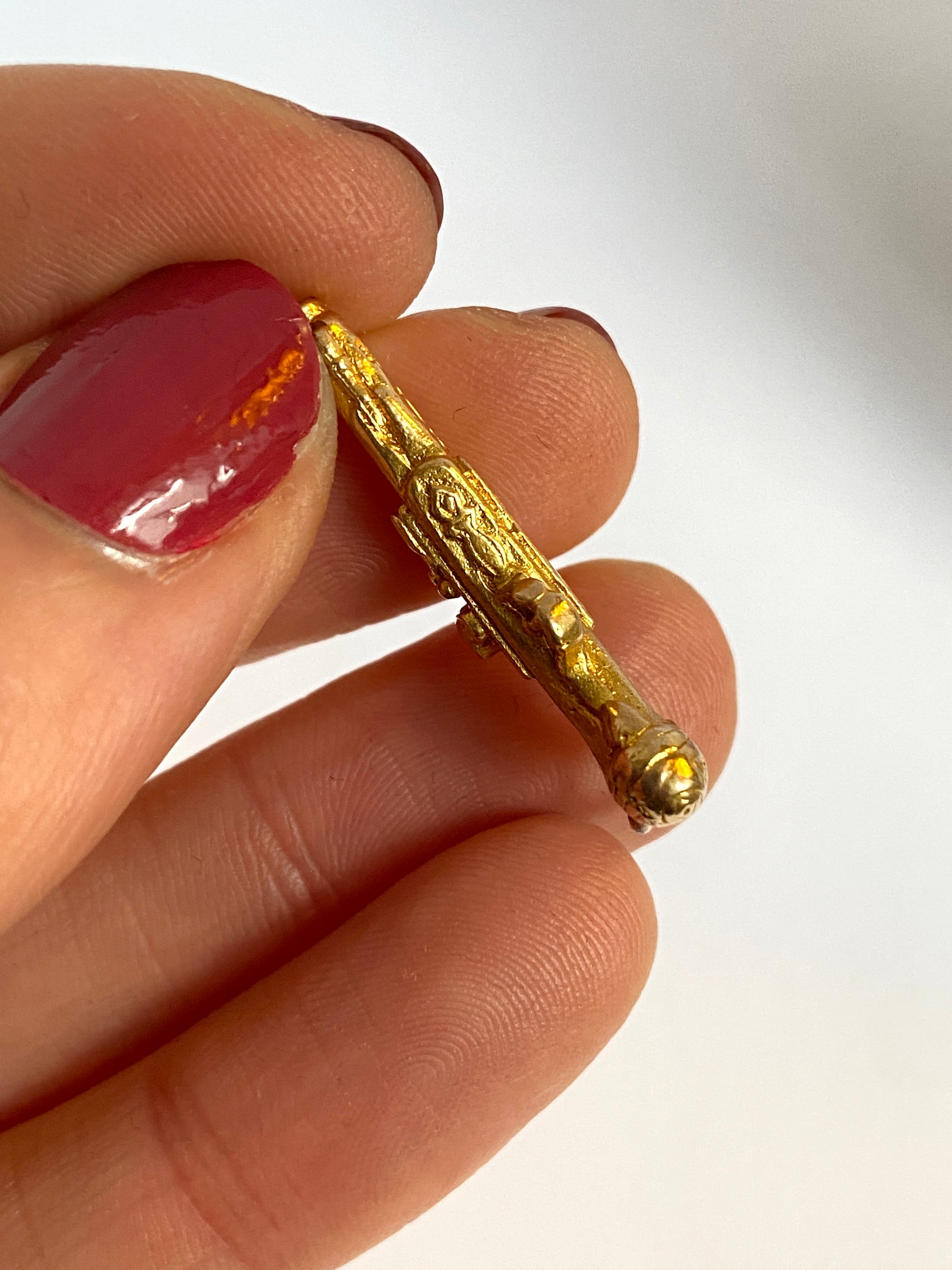 This wonderful solid gold charm weighs 4.54g and mesasures 3cm x 6mm.