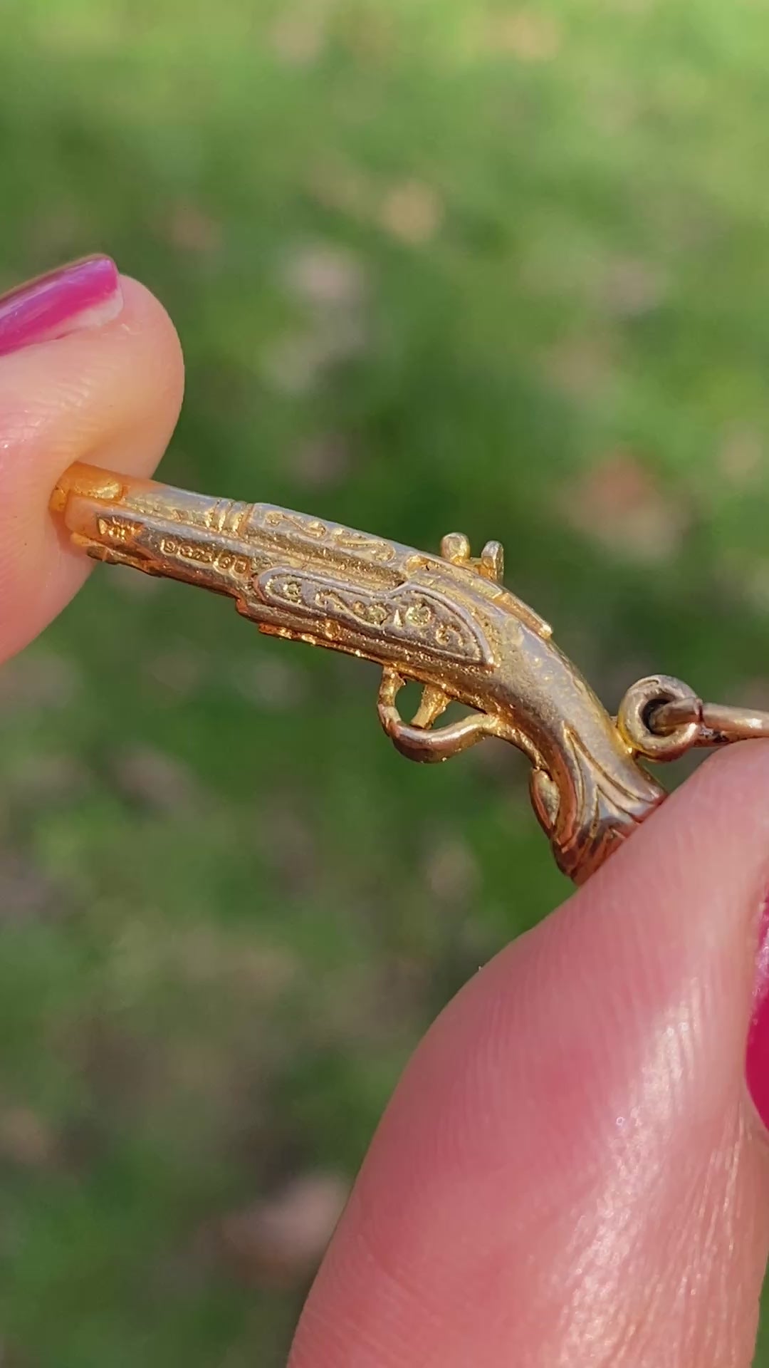 It has ornate engraving on both sides of its body with incredible attention to detail given the size of the charm.