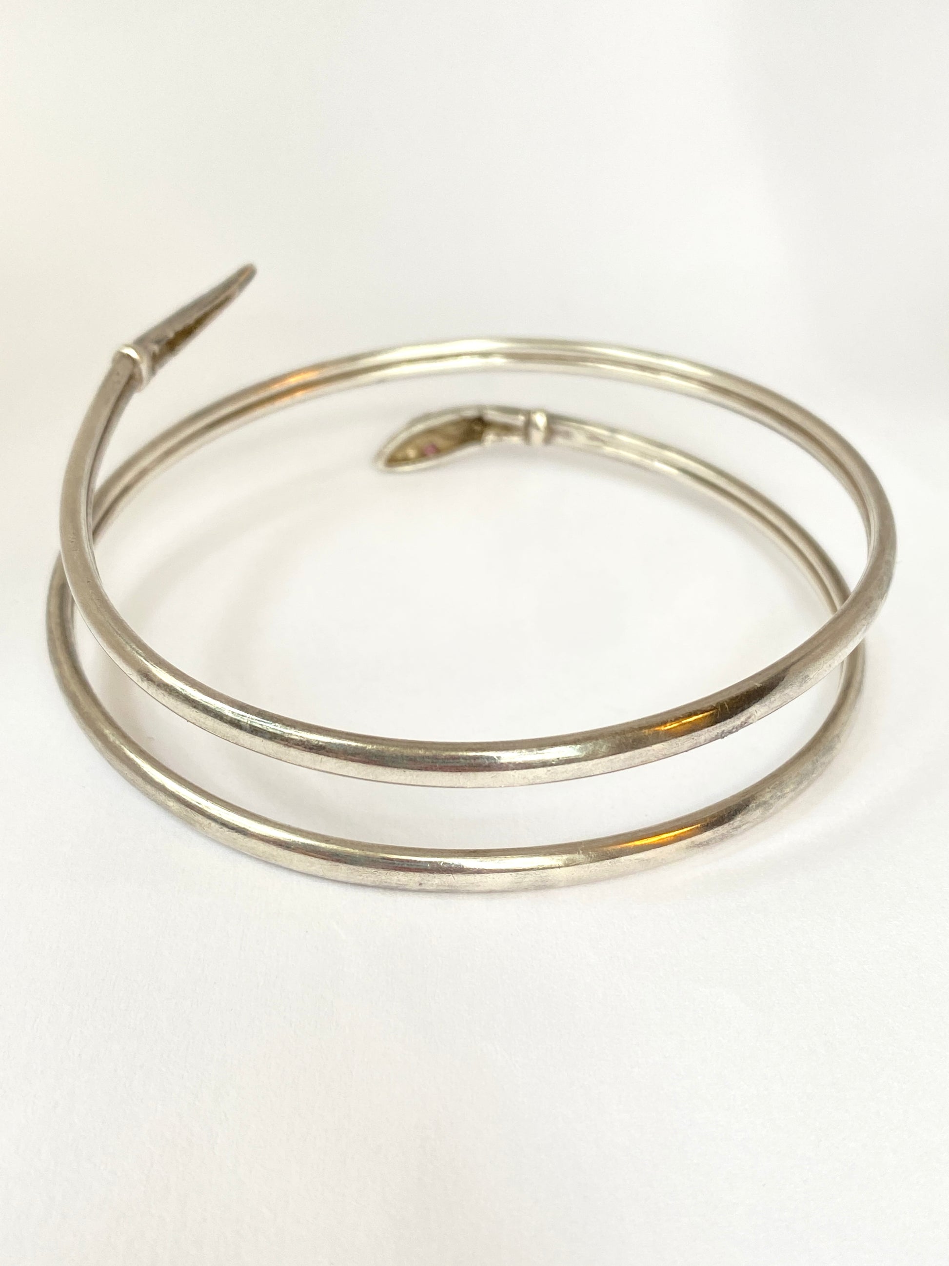 Vintage, Sterling Silver, Ruby Eyed Snake Bangle, 18.33g
